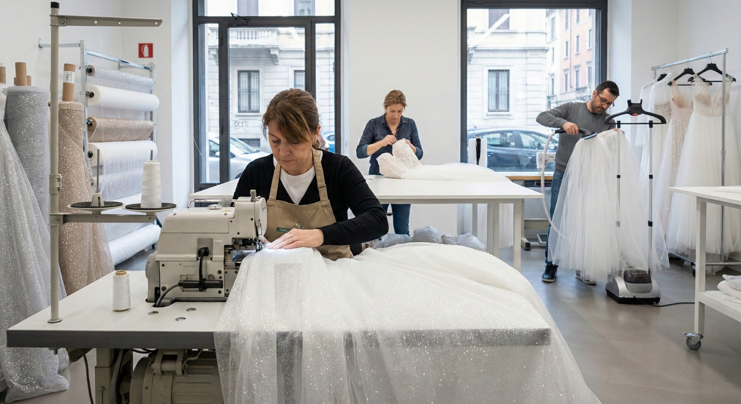 A Milan-based luxury atelier put our glitter tulle through their complete production workflow—cutting, overlocking, hand-stitching, and steaming. After 8 hours of continuous processing, workstations remained clean and particle retention exceeded expectations.