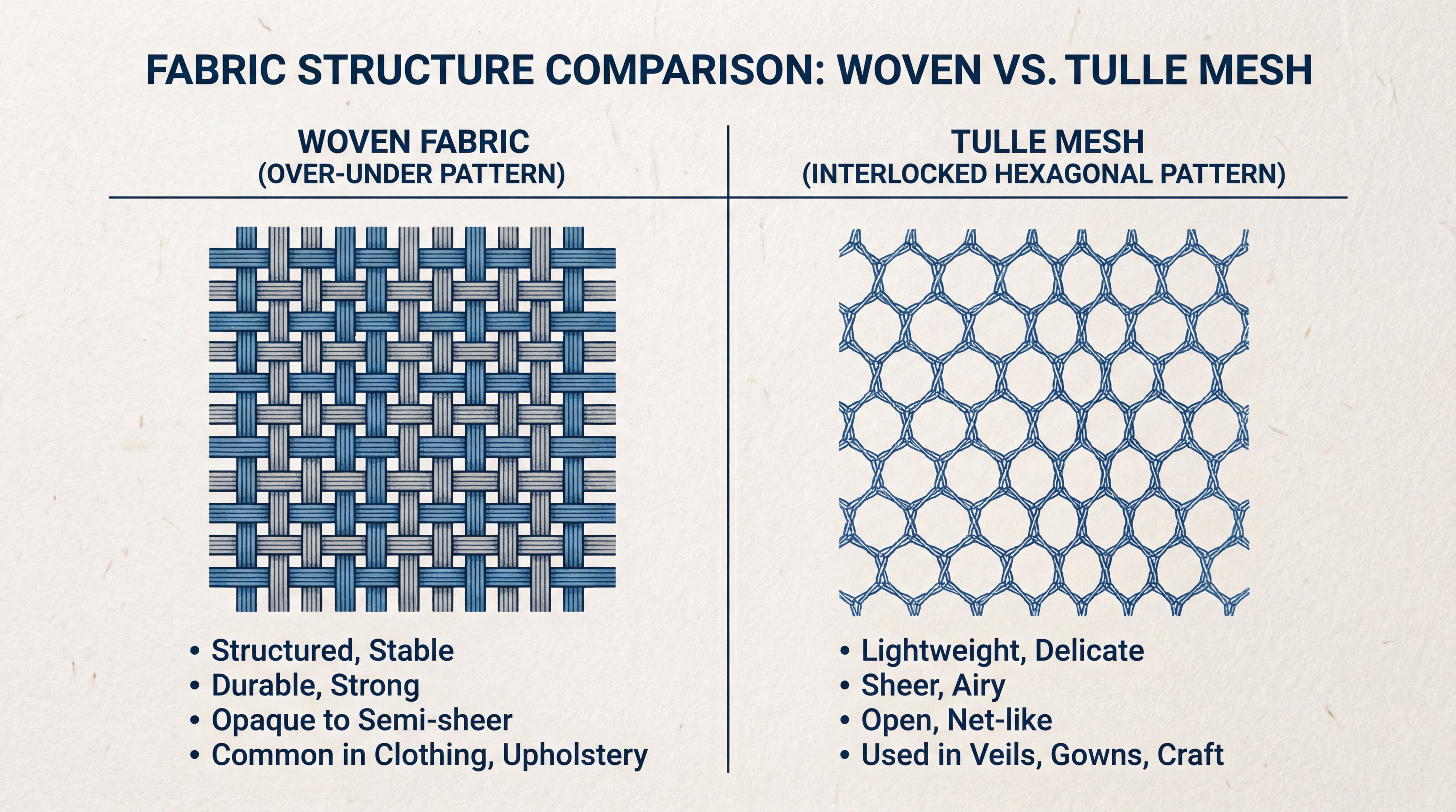 Key Takeaway: The versatility of tulle lies in its “hand”—ranging from buttery soft for veils to structurally rigid for support.