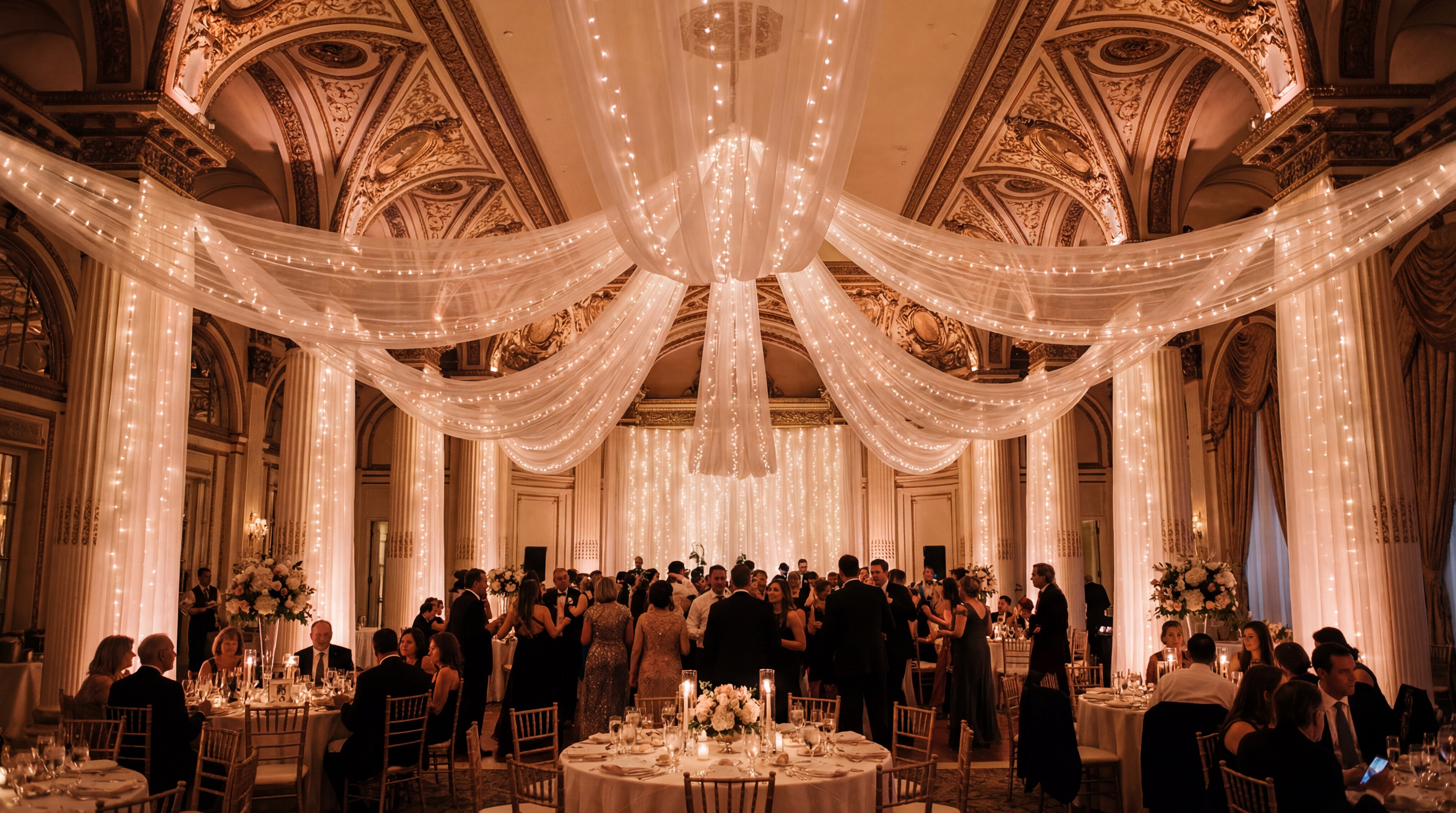 Key Takeaway: Tulle is the most cost-efficient way to transform a large, empty space into a romantic and inviting venue.