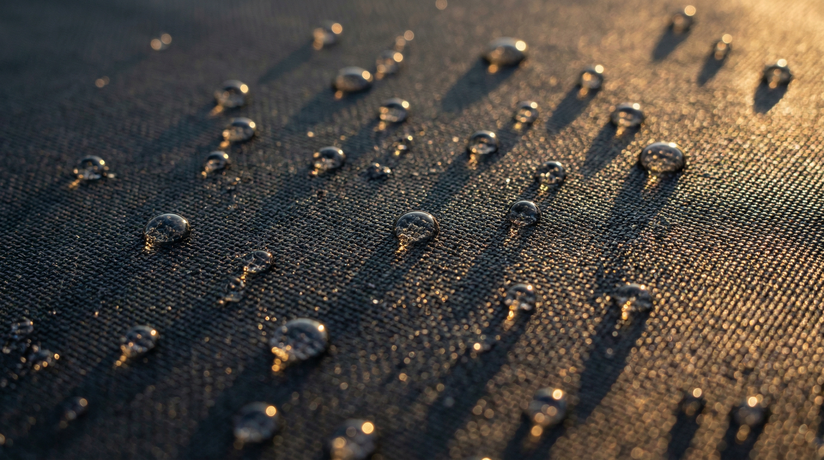 - Hydrophobic: Causes water to bead and roll off, keeping the fabric lightweight in rain.