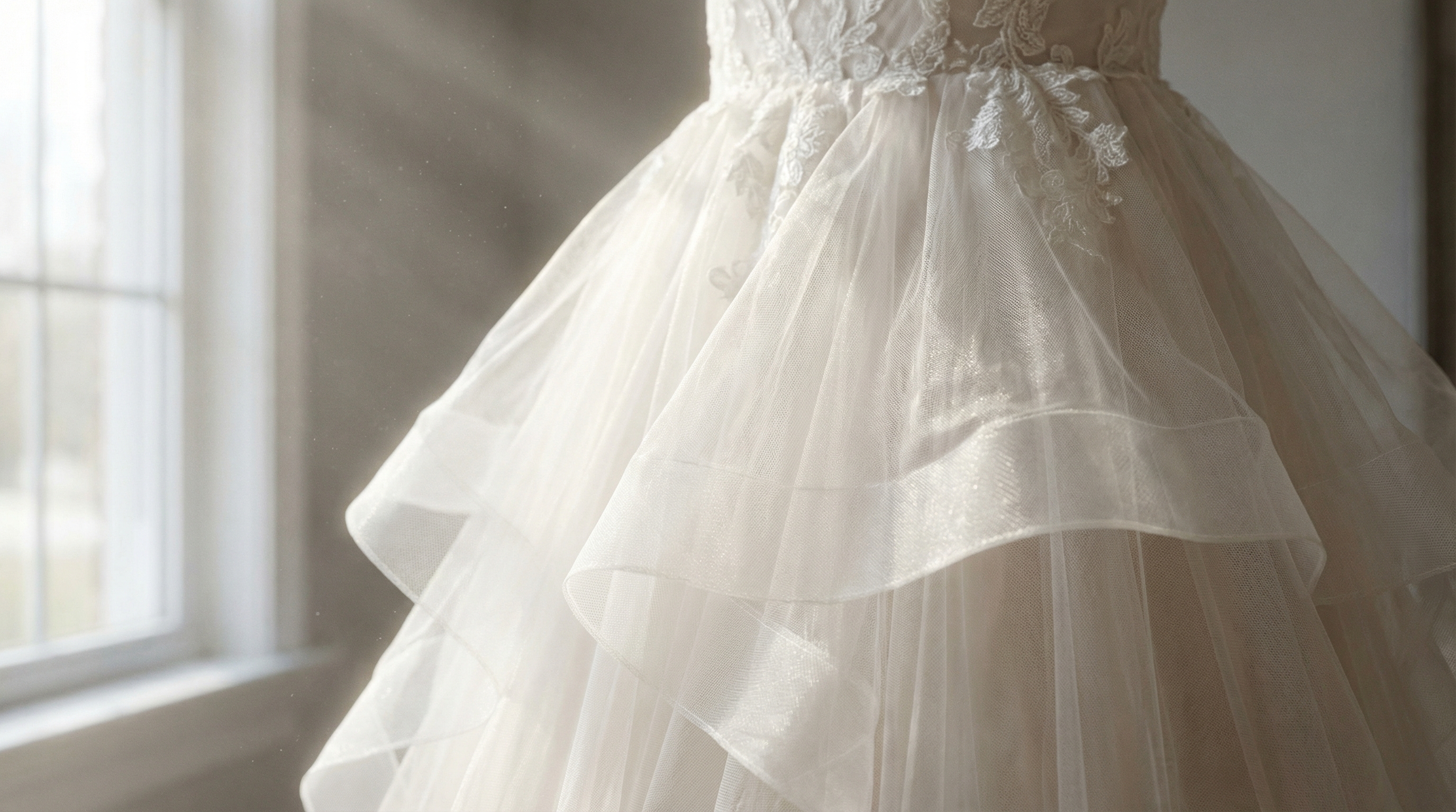 Key Takeaway: Delicate mesh variants provide the necessary volume and “floaty” texture essential for the bridal and formalwear industries.