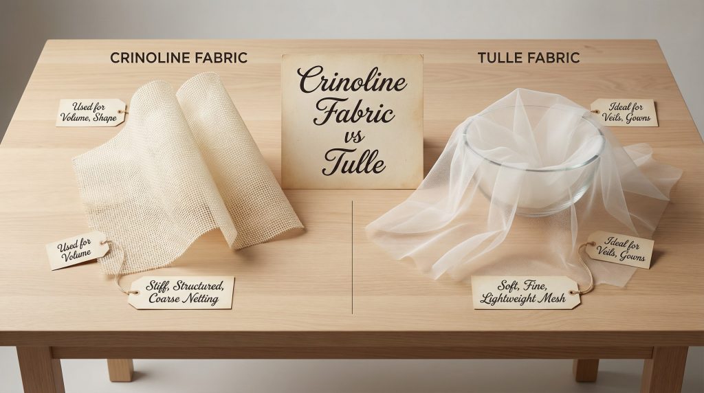 Key Takeaway: Crinoline provides the hidden structural “architecture” of a garment, while tulle provides the visible, decorative “atmosphere.”