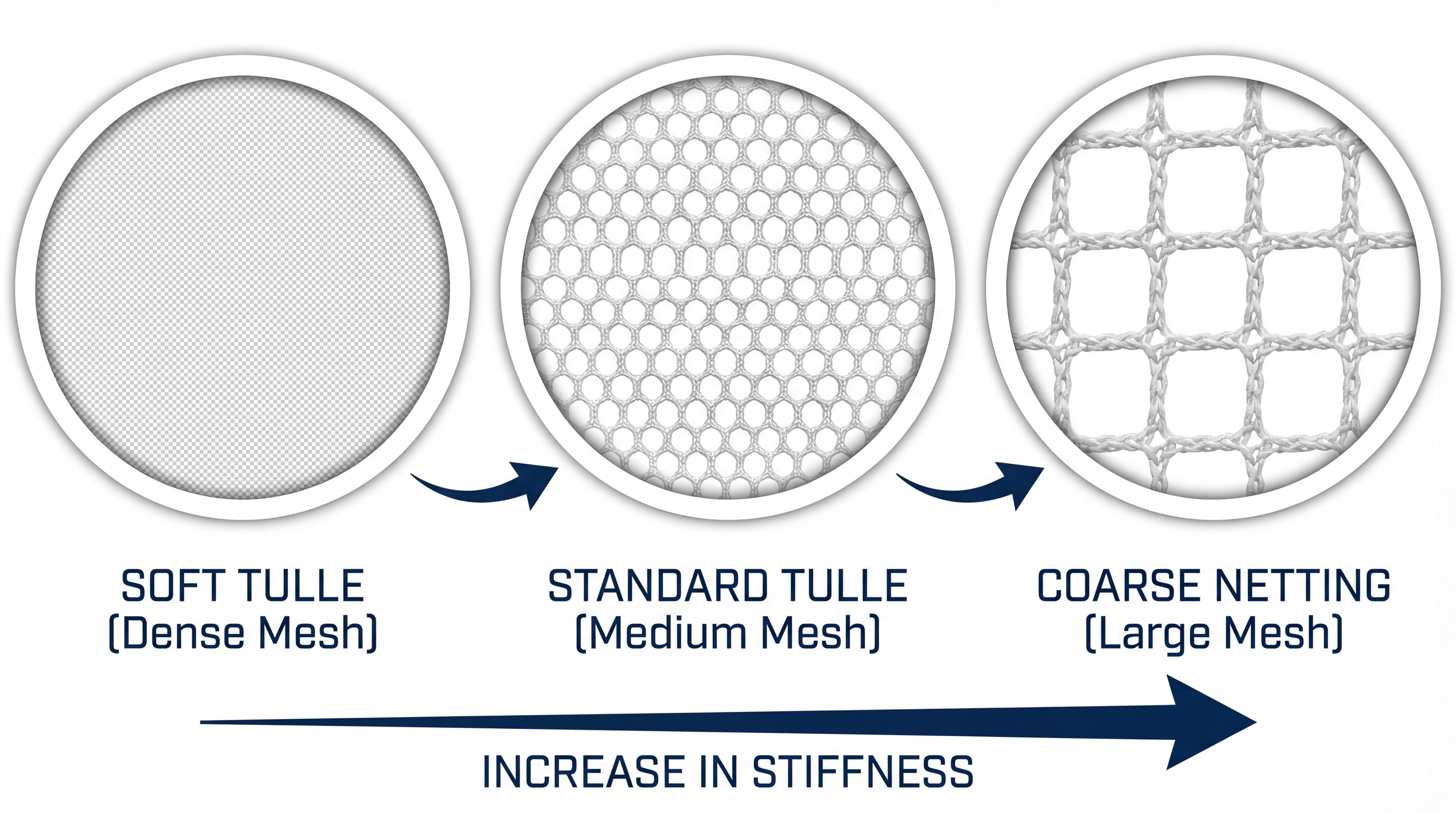 Let’s dive in. The stiffness of tulle is determined by the size of the hexagonal holes and the thickness of the fibers used. Large-hole tulle is very stiff and used primarily for petticoats, while fine-mesh tulle is soft enough to be worn directly against the skin. This versatility makes it the most widely used sheer fabric in the wedding and event industry.