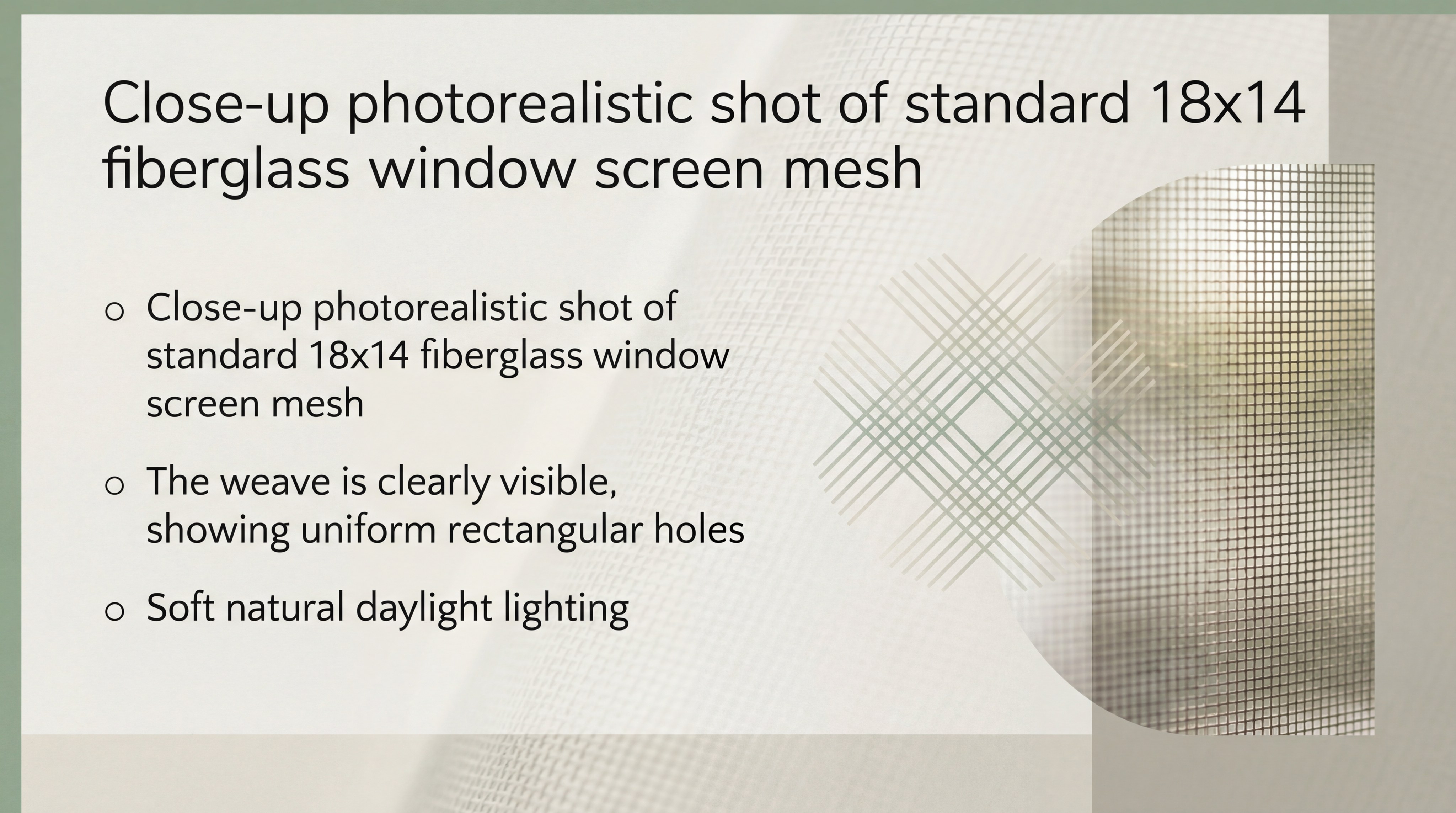 Standard netting is defined by a larger 18×14 mesh weave designed to block common household pests like flies and mosquitoes. This material is the industry baseline for most residential window and door applications.