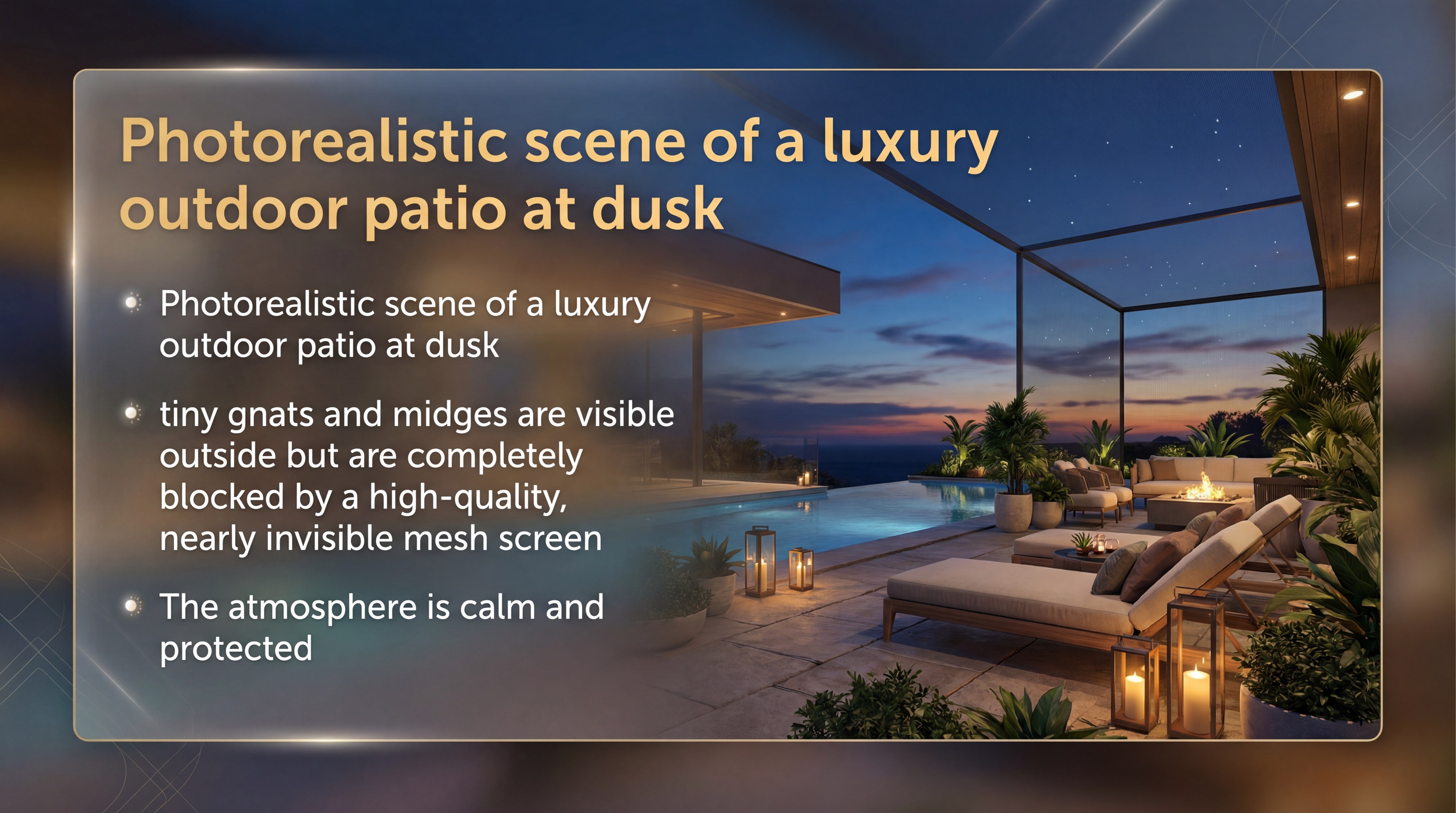 | Pool Lanai | No-See-Um 20×20 | Full Enclosure Safety | |