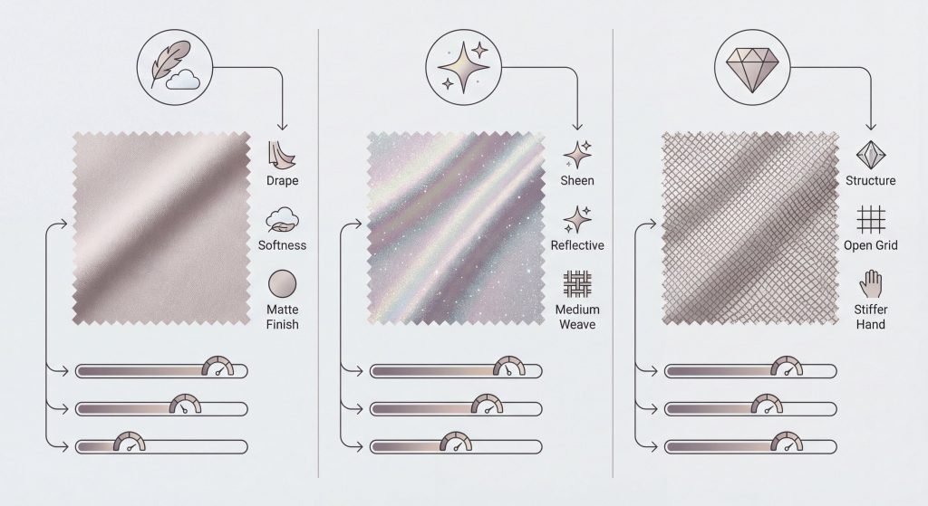 | Tulle Type | Finish | Best Use | |