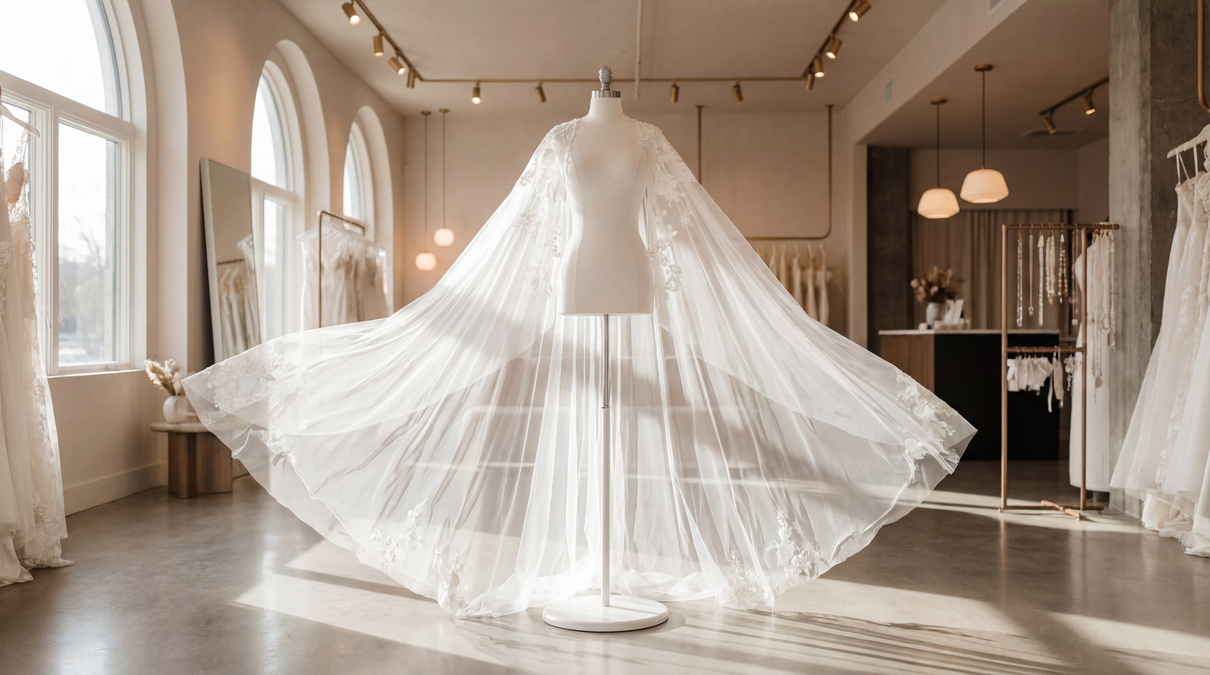 Key Takeaway: Choose lightweight fabrics for a floating effect and heavier, stiffer options if you want the veil to hold a specific architectural shape.