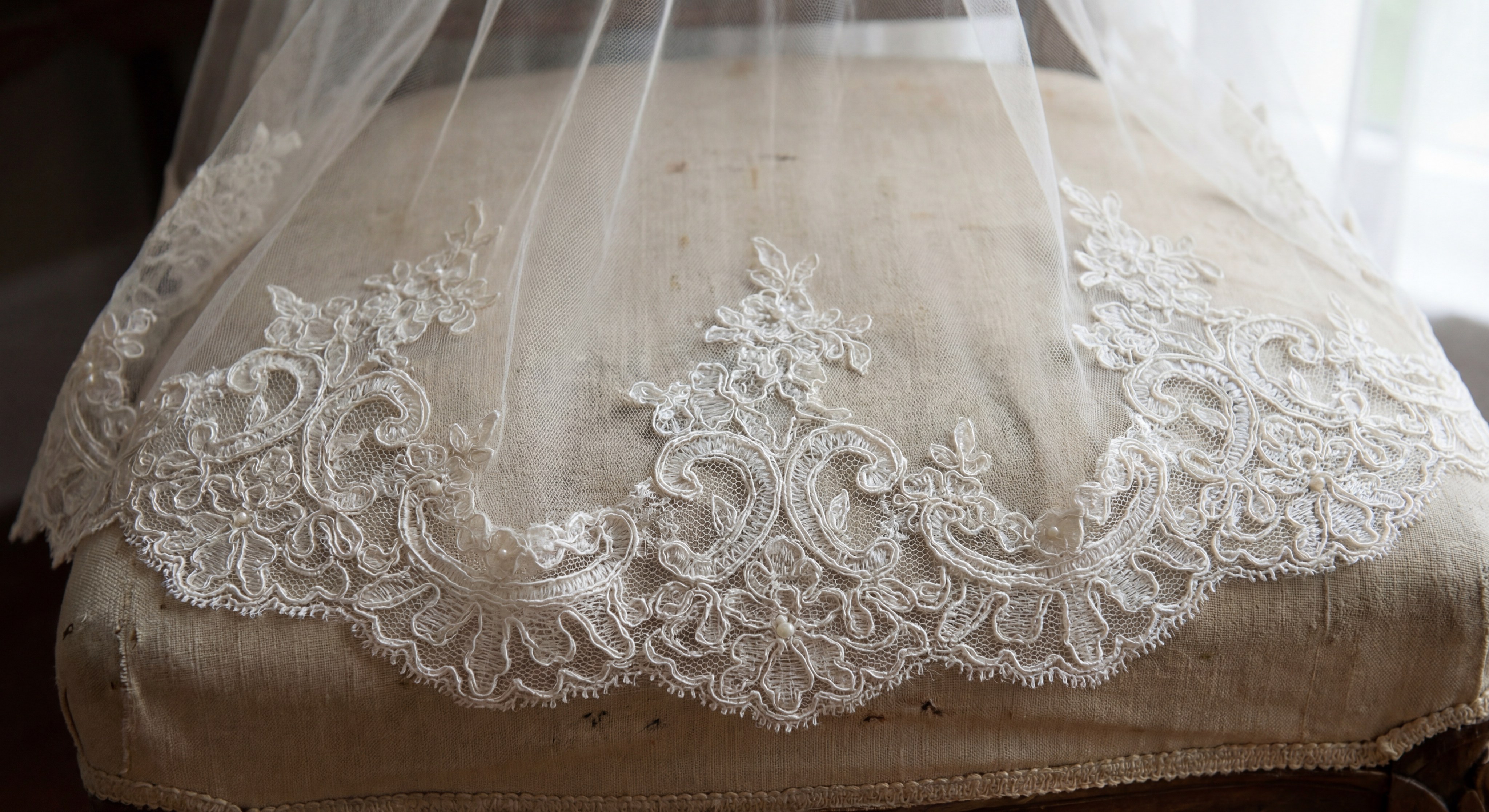Choosing the right lace requires balancing the intricacies of your dress with the pattern of the veil.