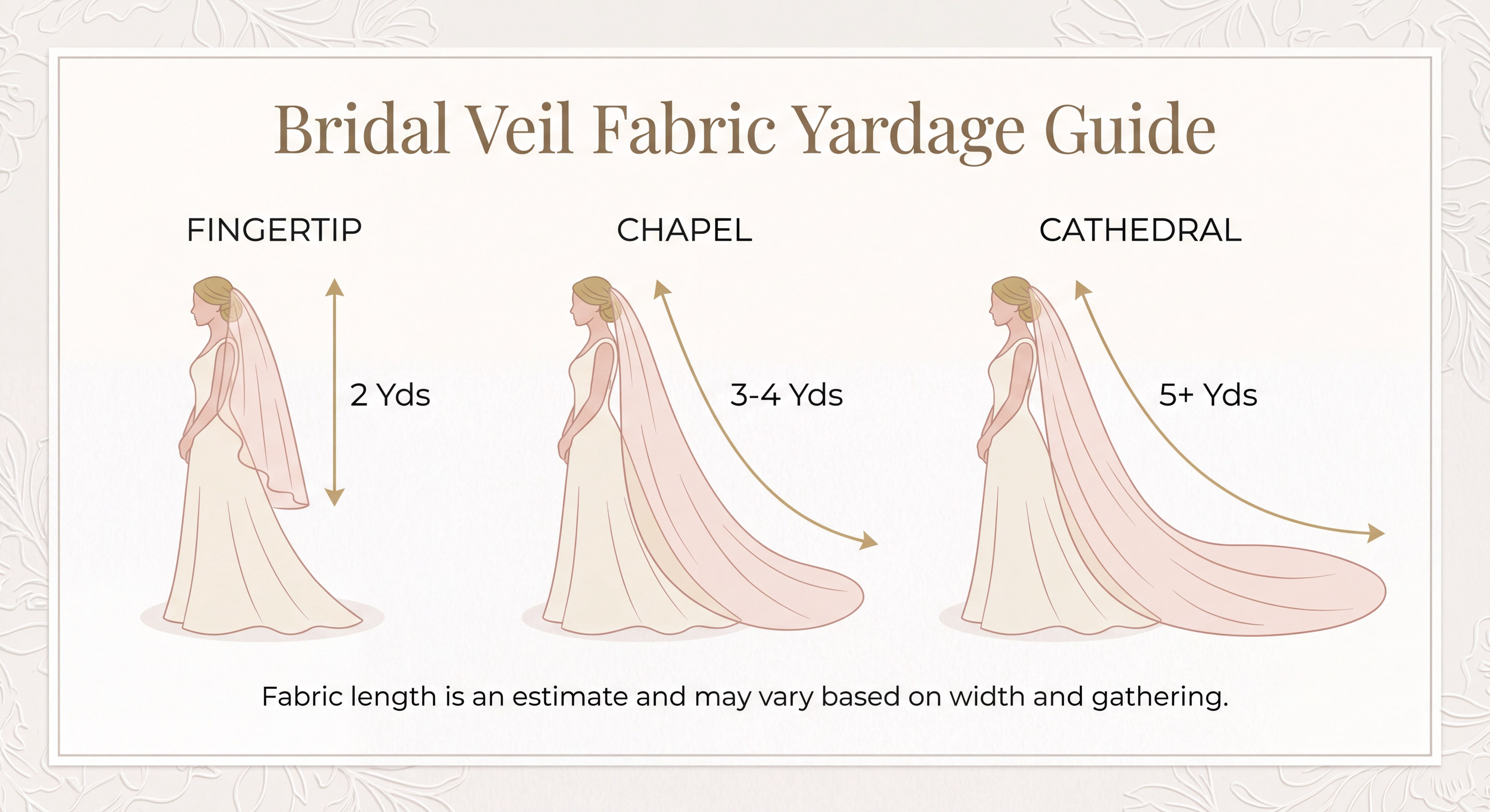 Using these estimates ensures you have enough material to achieve the professional level of fullness seen in designer veils.