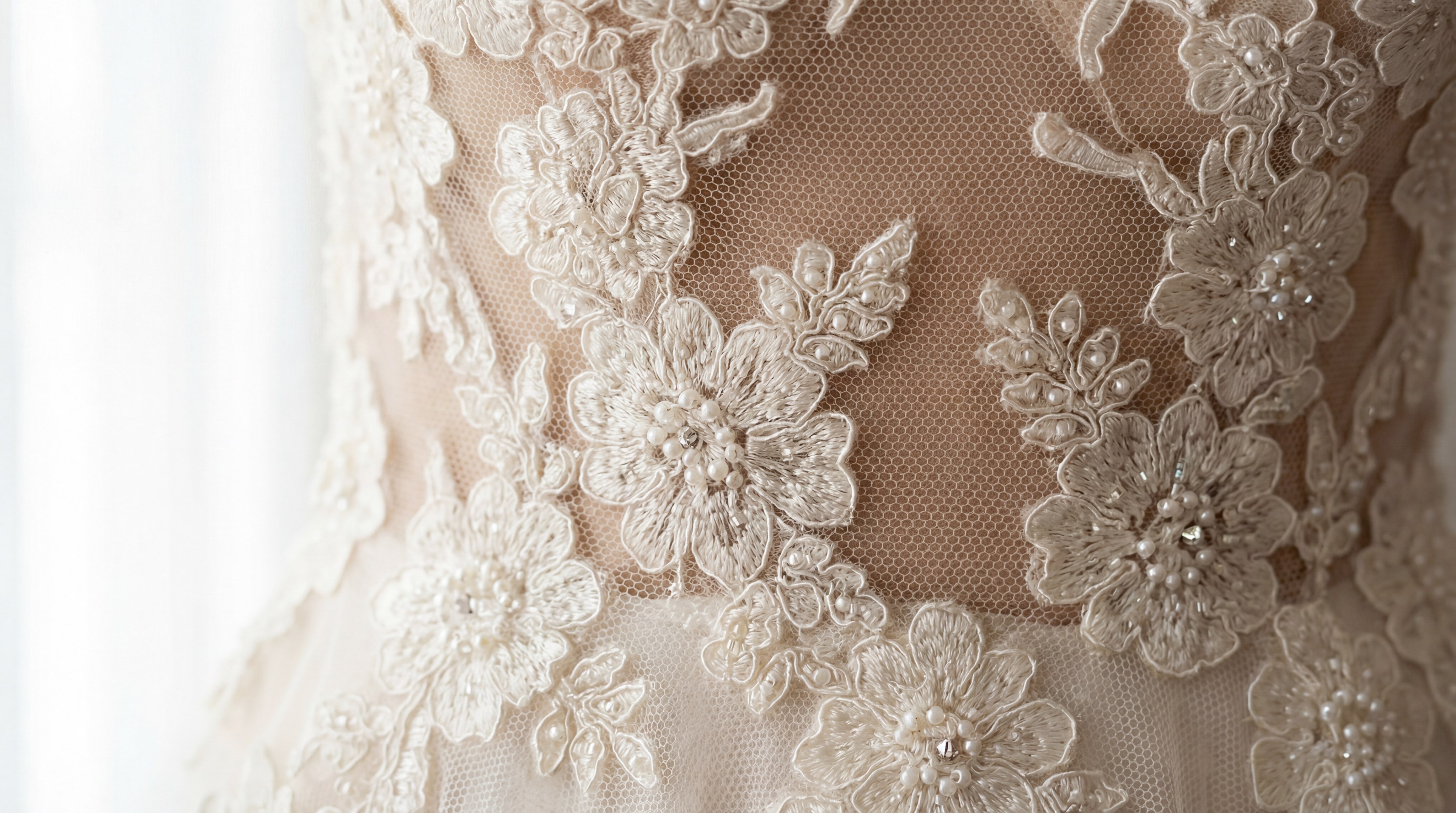 Key Takeaway: In bridal wear, mesh acts as a structural foundation that provides invisible support for complex decorative elements.