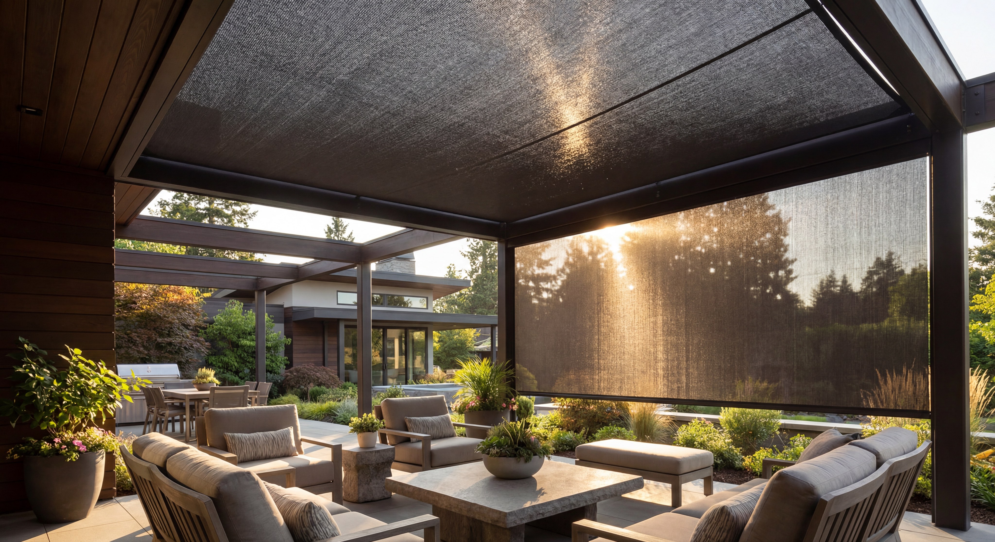 | Solar Screen | Heat/UV Blockage | Patio Shades | |