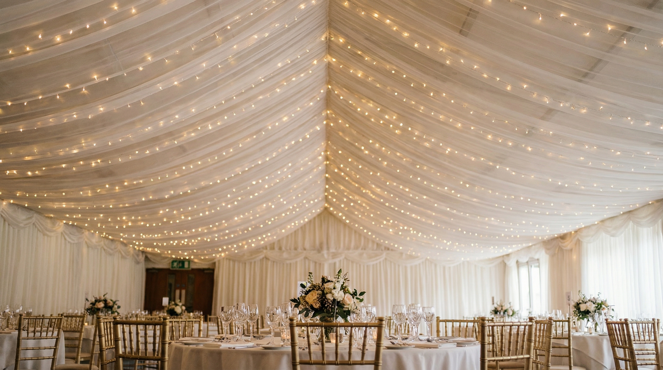 It gets even better. Adding LED “fairy lights” behind layers of mesh creates a magical, glowing effect that clients love.