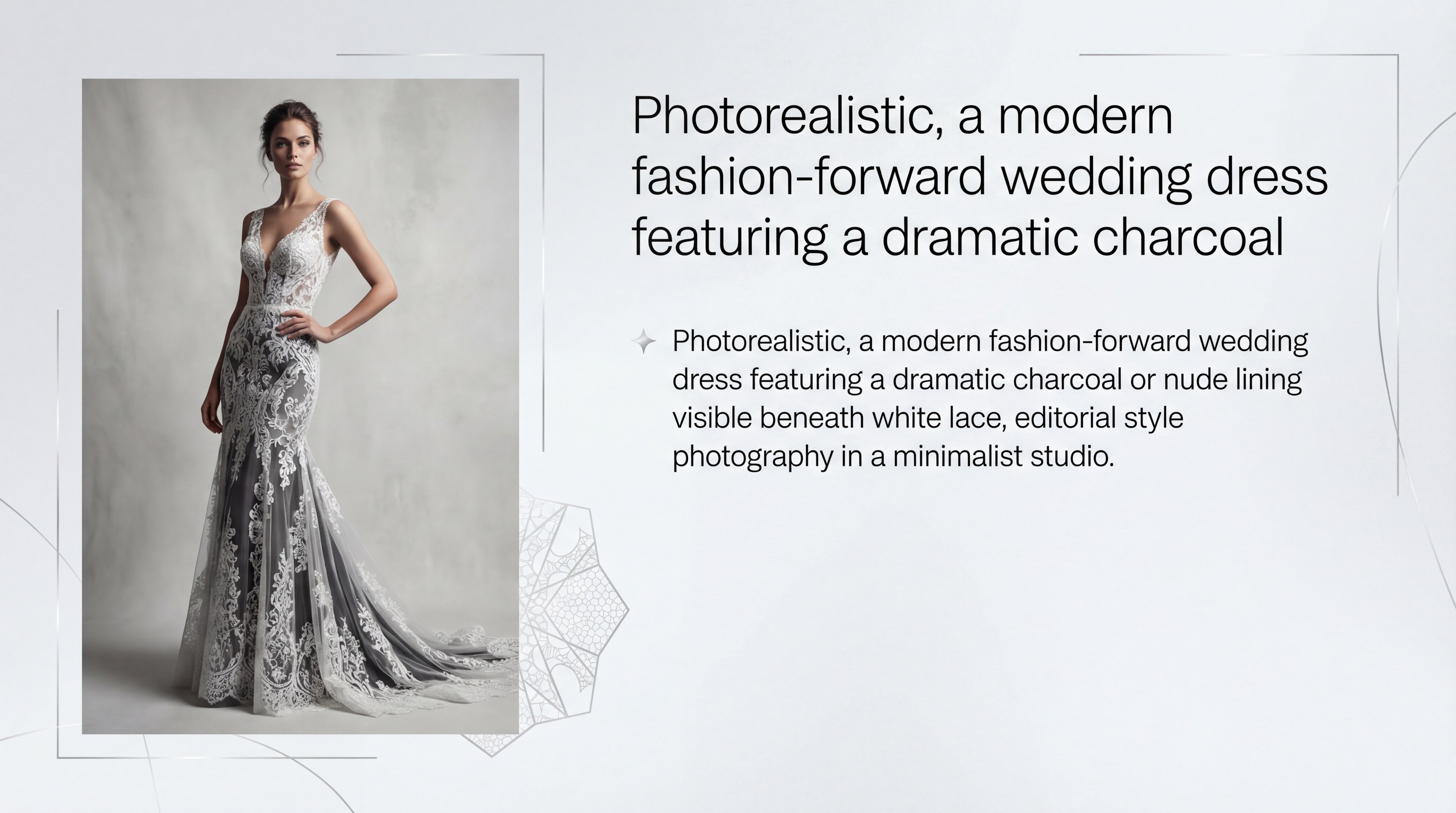 A black or charcoal lining beneath white or silver lace creates a dramatic, high-contrast look. It emphasizes the “negative space” of the lace pattern and appeals to brides looking for a non-traditional aesthetic.