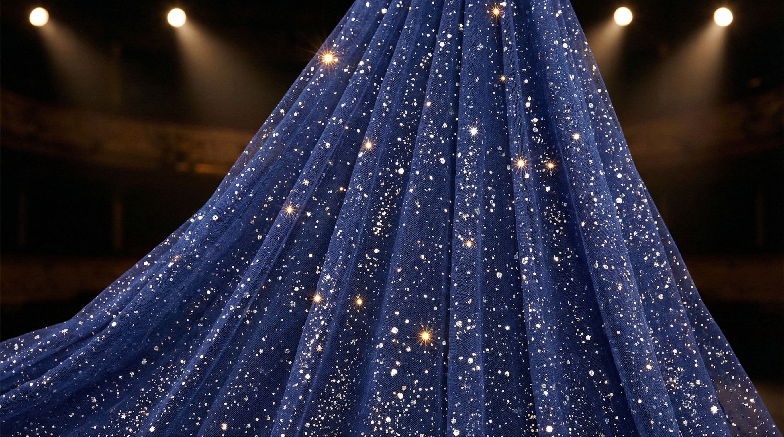 Key Takeaway: Glitter and sparkle tulles are specialized materials that enhance the theatrical storytelling of a costume through light reflection.
