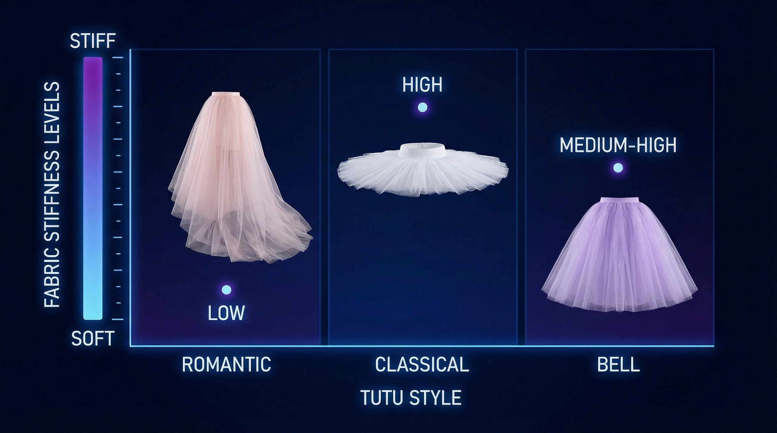 Key Takeaway: Soft tulle is the definitive material for romantic tutus because it prioritizes movement and drape over rigid structure.