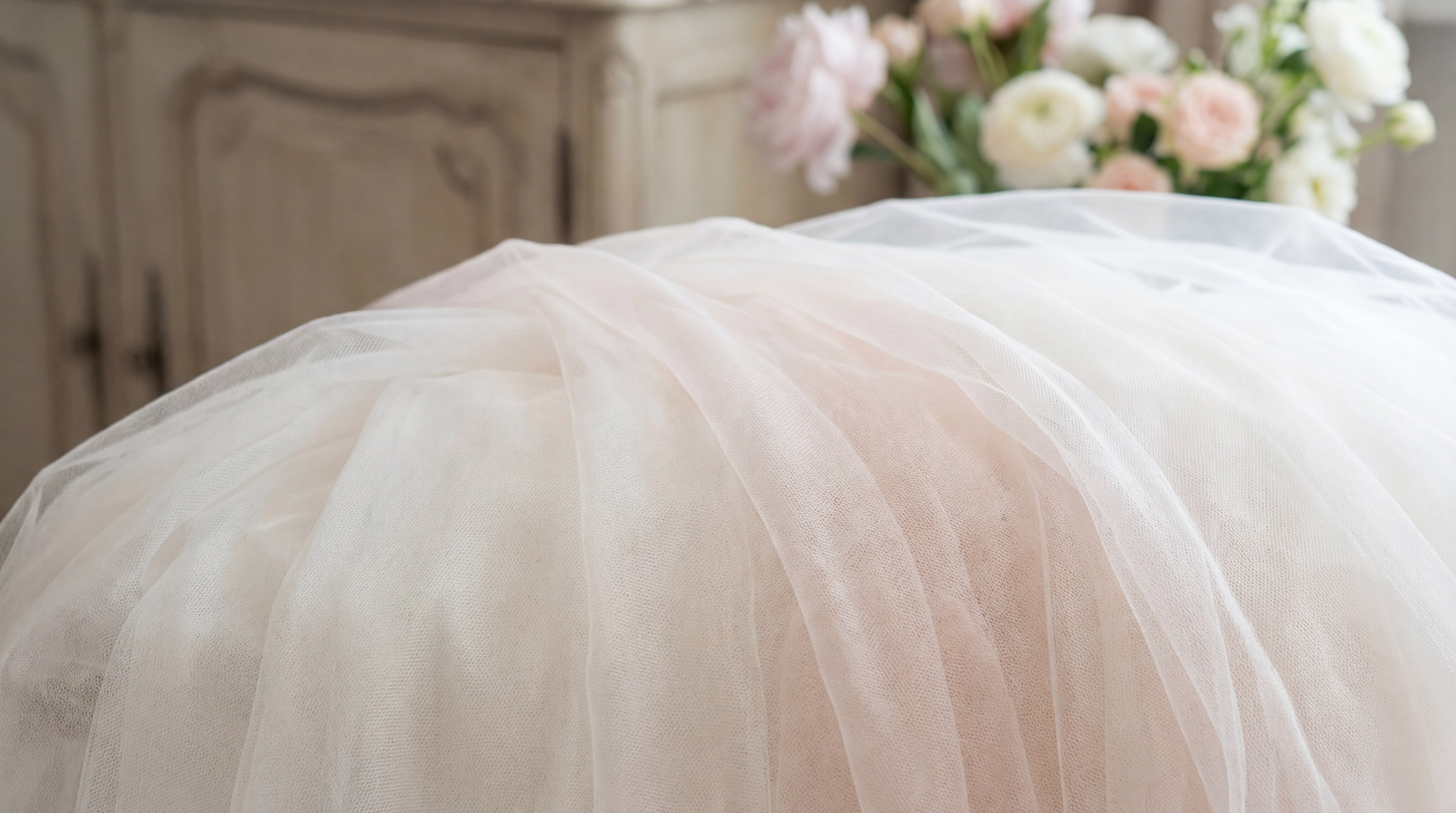 The structural integrity of bridal tulle is essential for maintaining the silhouette of luxury garments under the weight of artistry.