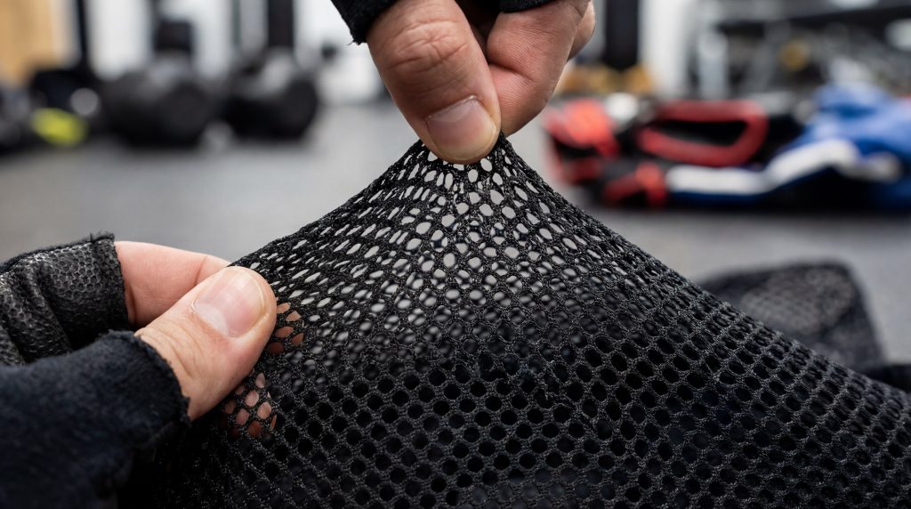 Heavy-duty mesh fabric types for luggage are typically made from “Sandwich” mesh or thick-denier nylon. These fabrics provide the necessary ventilation for items like gym bags while being strong enough to support the weight of heavy gear.