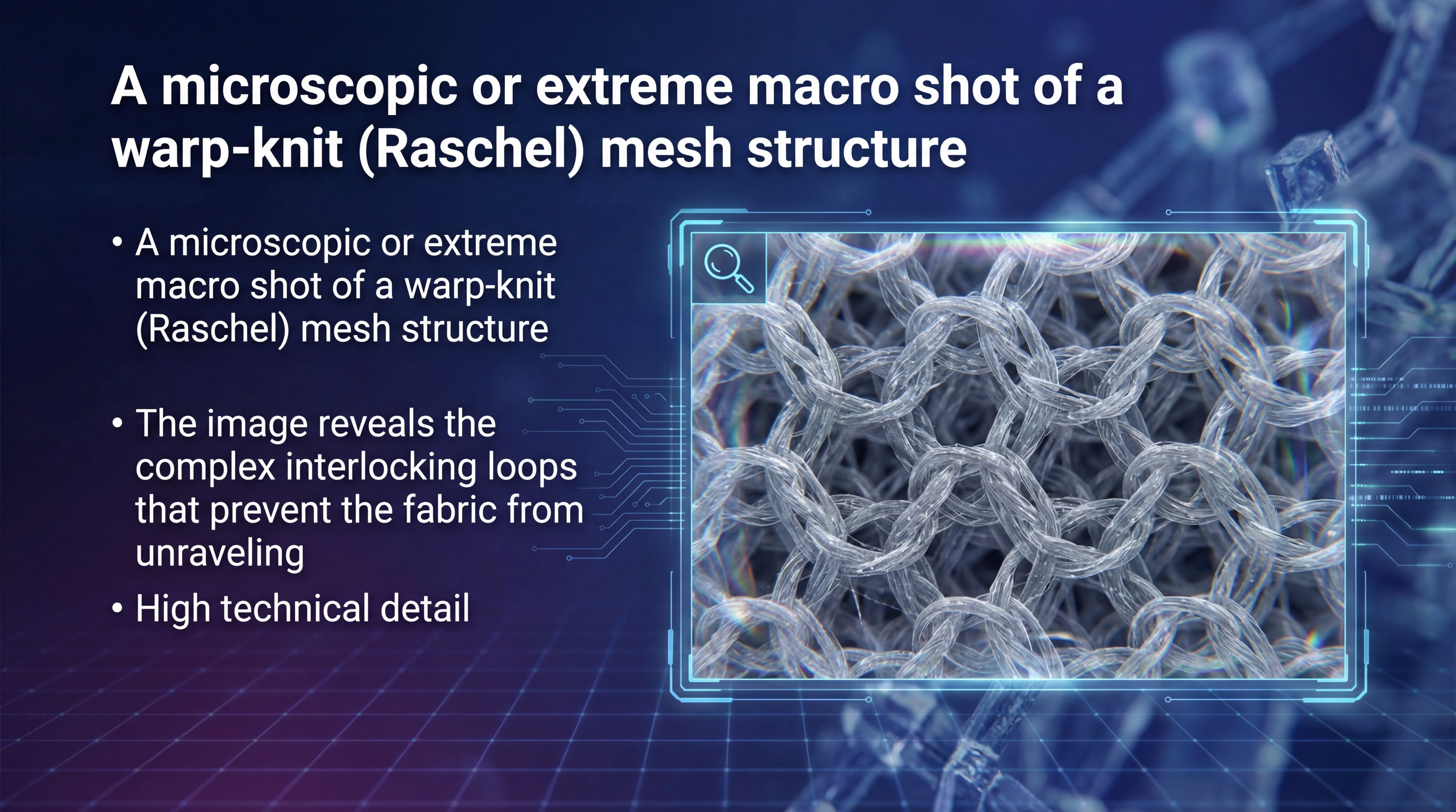 The primary benefit of a warp-knit mesh is its resistance to running or unraveling. Even if a single thread is compromised, the rest of the structure remains secure.