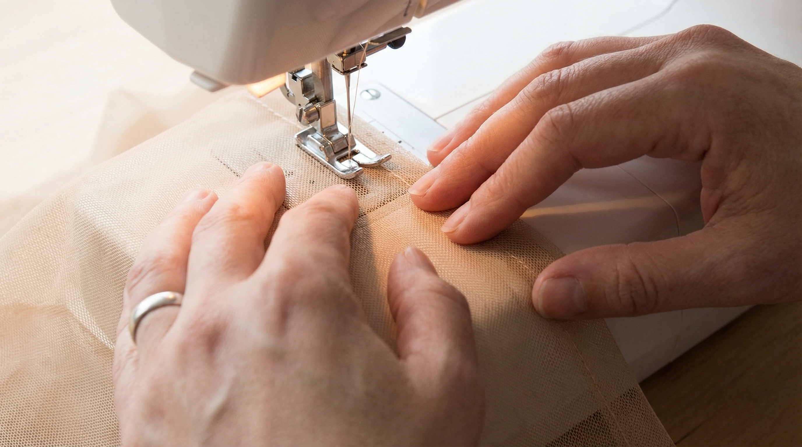 What’s the best way to prevent the machine from “eating” the mesh?Place a piece of tissue paper or water-soluble stabilizer under the fabric at the start of the seam. This provides the feed dogs with enough surface area to grip, preventing the delicate net from being pulled into the throat plate.