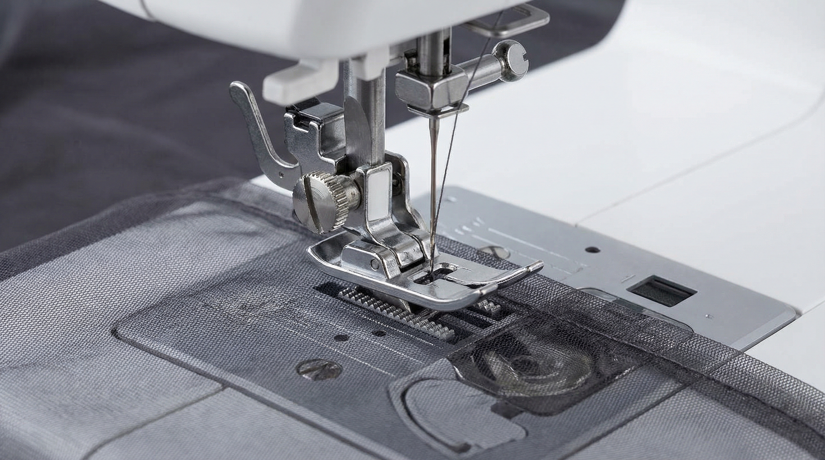 It gets better. If you are working with coated or “sticky” mesh variants, a Teflon foot can reduce surface friction significantly. This prevents the fabric from getting caught or stuck under the foot.