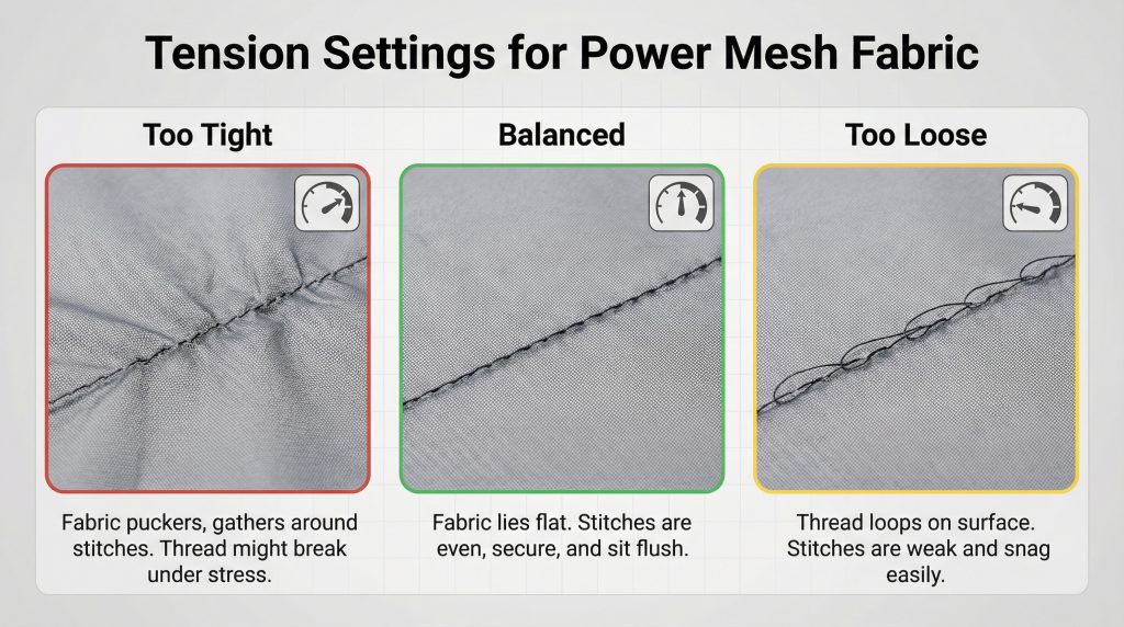 Calibrating your machine’s tension is essential when working with power mesh fabric to prevent “tunneling,” which is when the fabric bunches up between the zig-zag peaks. Incorrect tension settings can also lead to skipped stitches or thread breakage when the garment is worn. You generally need to loosen the top tension slightly to allow the stitch to sit comfortably on the surface of the mesh without pulling it inward.