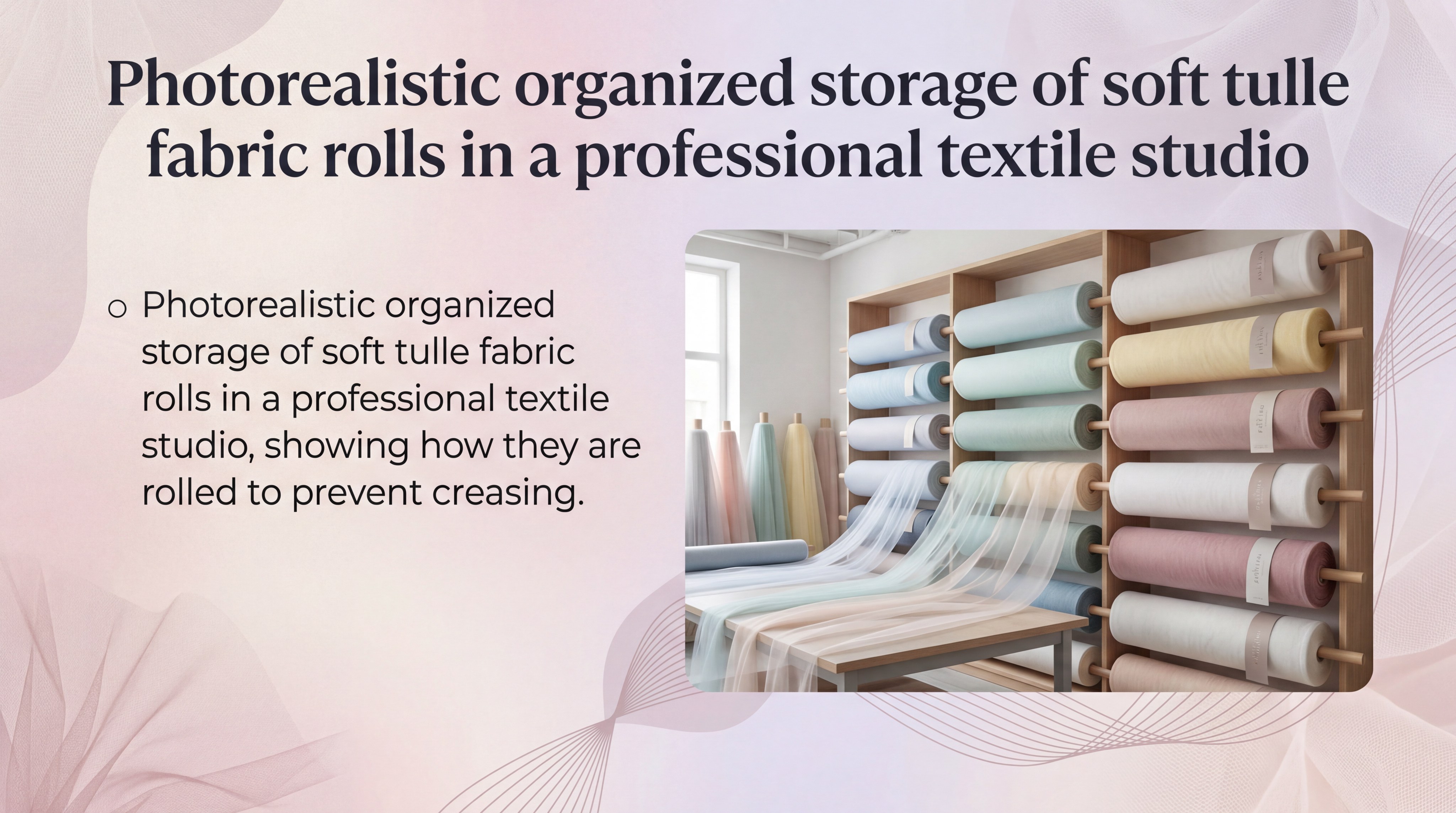 Key Takeaway: Proper storage—specifically rolling—is the best way to maintain the aesthetic quality and “loft” of your mesh inventory.