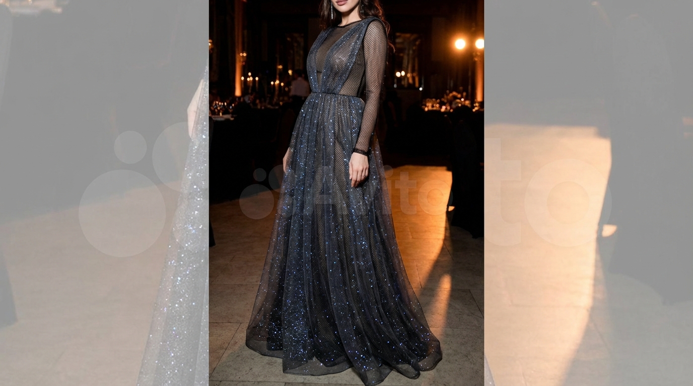 Glitter tulle fabric provides an unmatched combination of lightweight structure and intense luminosity for high-end fashion. This material allows designers to create voluminous shapes that appear to glow from within.