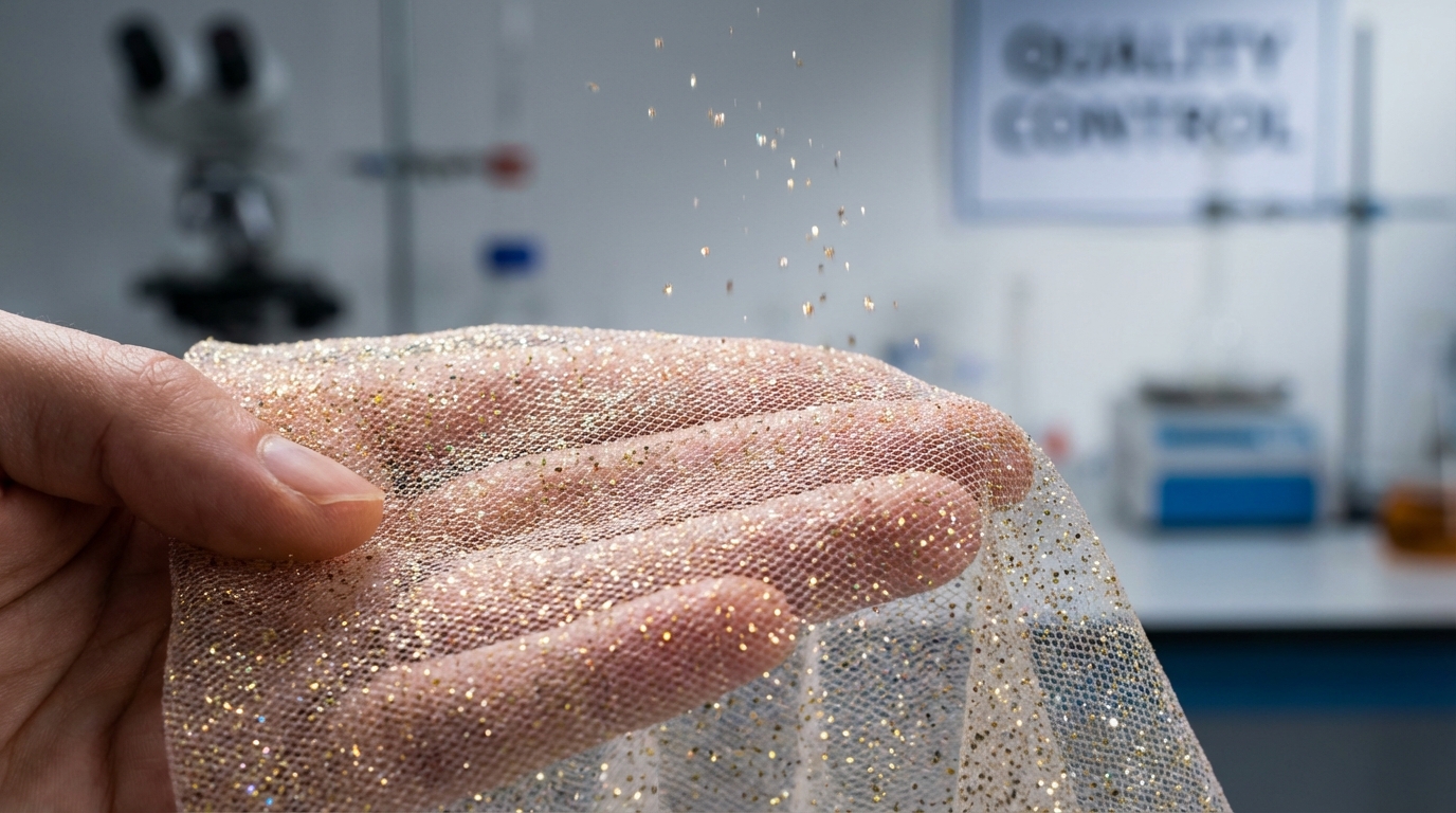 The shake test involves vigorously moving a sample to see how many particles fall off. A high-quality mesh should lose almost zero glitter during this process.
