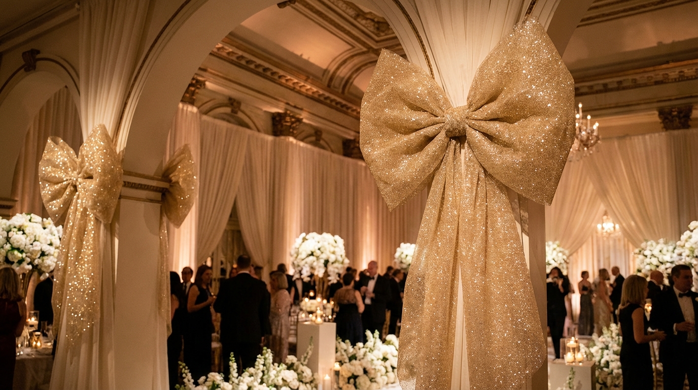 The inherent stiffness of the tulle mesh allows for large, architectural bows that hold their shape without wilting. These are perfect for grand entrances or chair accents.