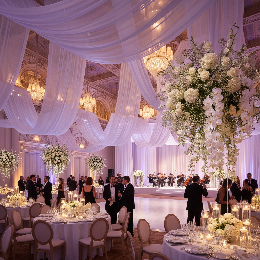 Analysis: Strategic use of wide-format netting allows decorators to transform massive industrial spaces into intimate high-end environments efficiently.
