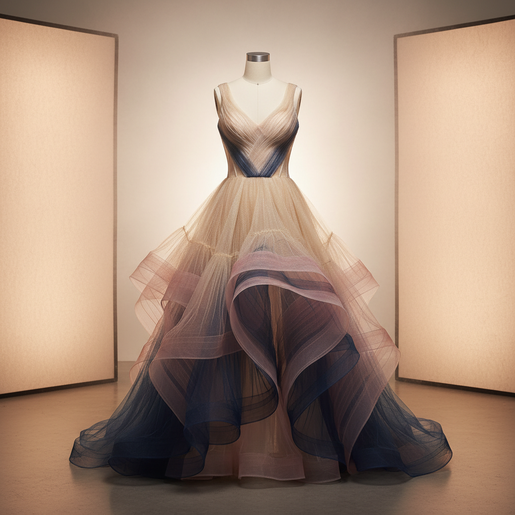 Analysis: Mastering multi-layered mesh construction allows designers to create complex color narratives and structural depth in evening wear.