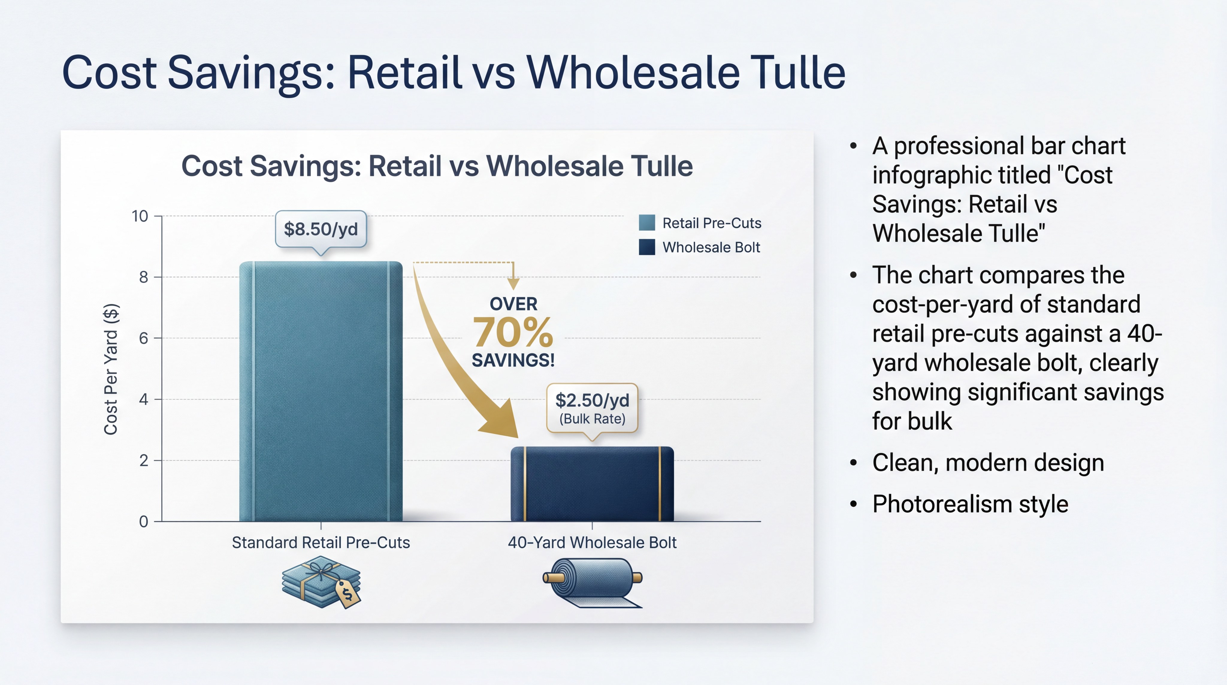 Key Takeaway: The extreme versatility and low cost-per-yard make bulk tulle a staple material for any business involved in visual presentation.