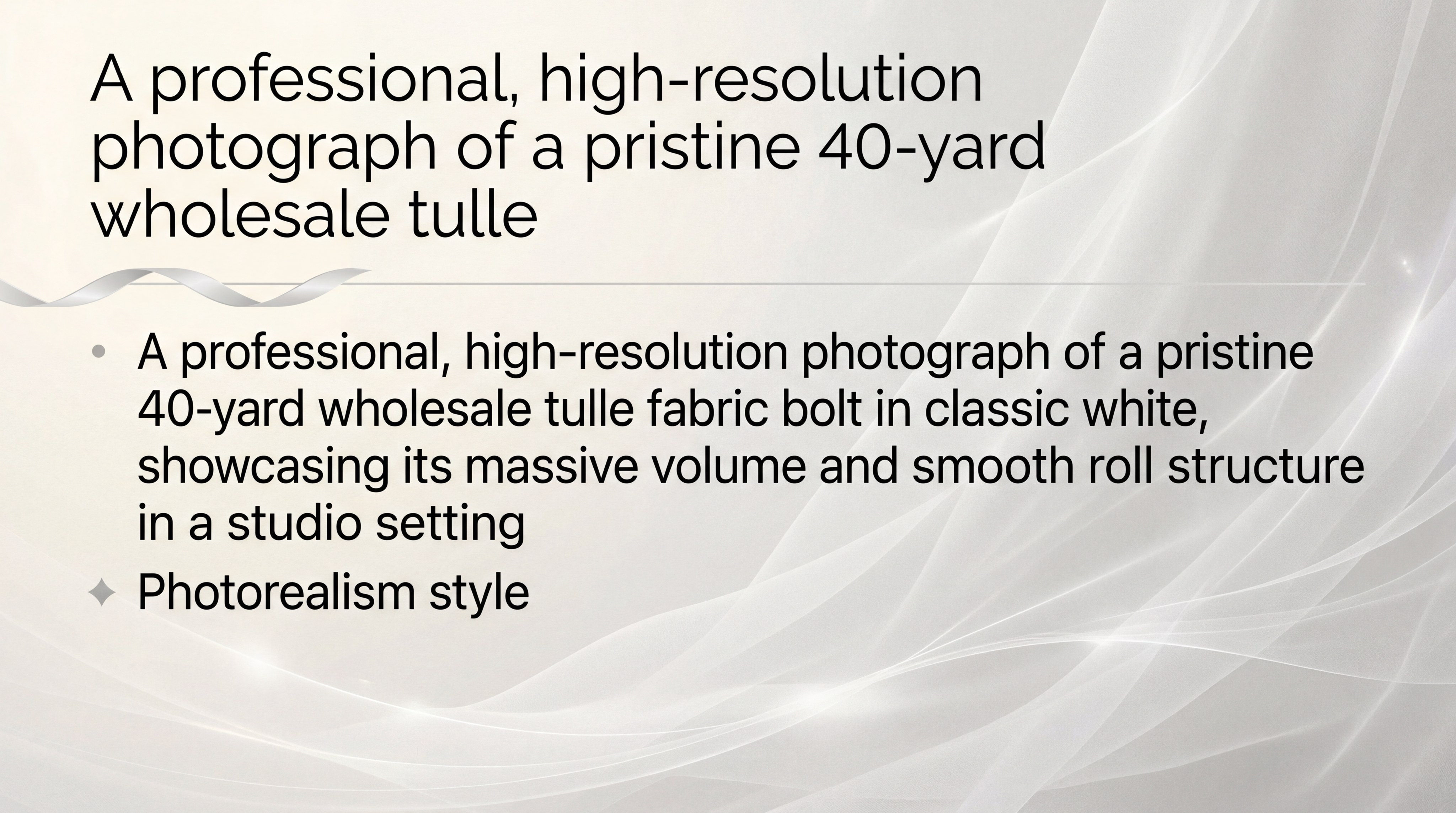The 40-yard length is the professional standard because it provides sufficient volume to cover entire venue sections while maintaining perfect color uniformity from a single dye lot. Utilizing wholesale tulle fabric bolts eliminates the visual “noise” of mismatched whites or slightly different shades of ivory that occur when mixing smaller retail rolls.