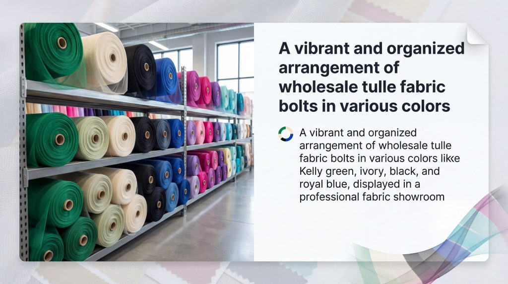 Maintaining a core inventory of wholesale tulle fabric bolts in neutral and classic tones allows your business to service a wide variety of themes with minimal overhead. While trends change, wholesale tulle fabric bolts in shades like white, ivory, and black remain the foundational pillars of the event industry year after year.