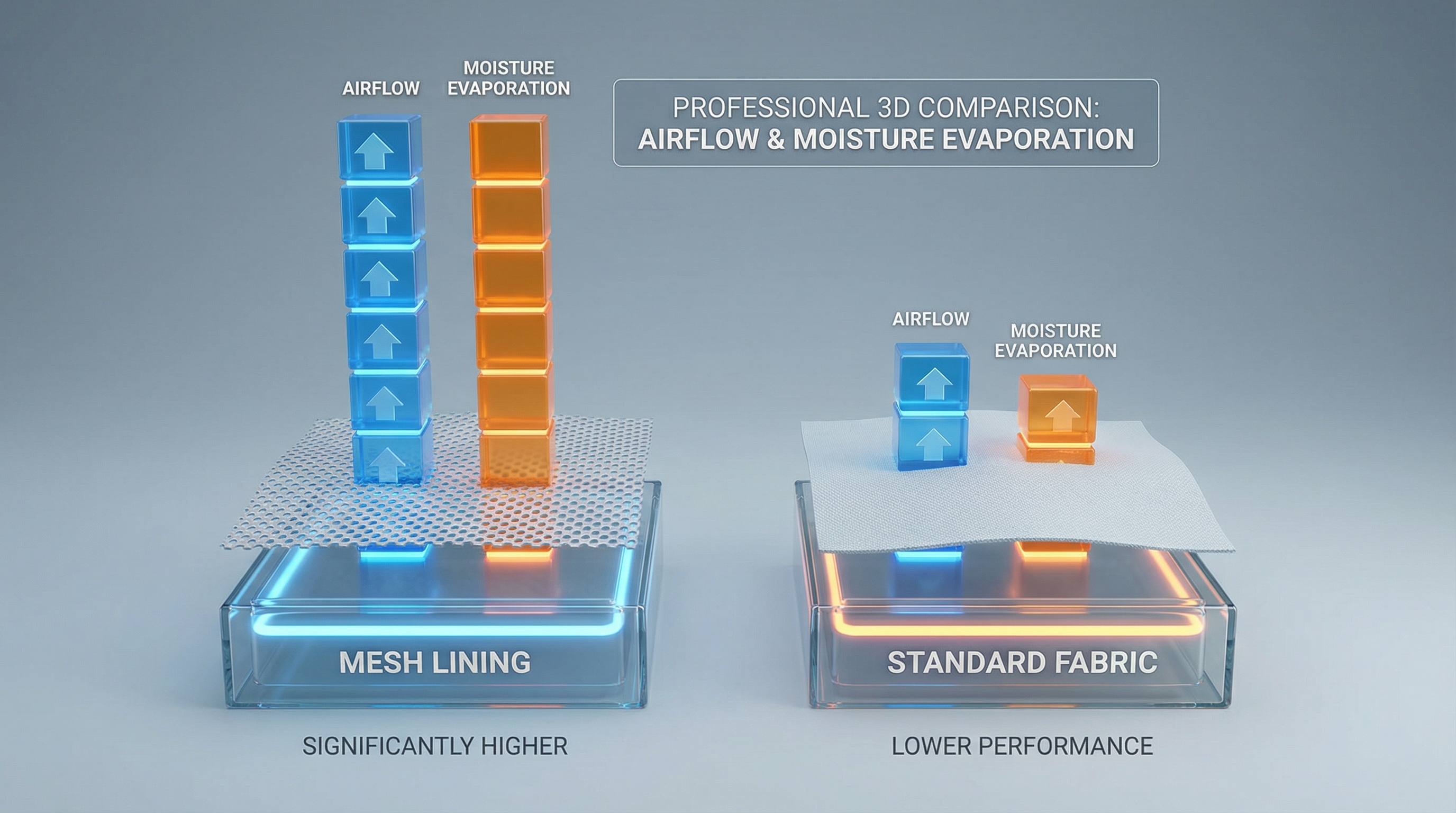 This data confirms that the open-knit design of a mesh liner is technically superior for moisture transport compared to traditional solid weaves.