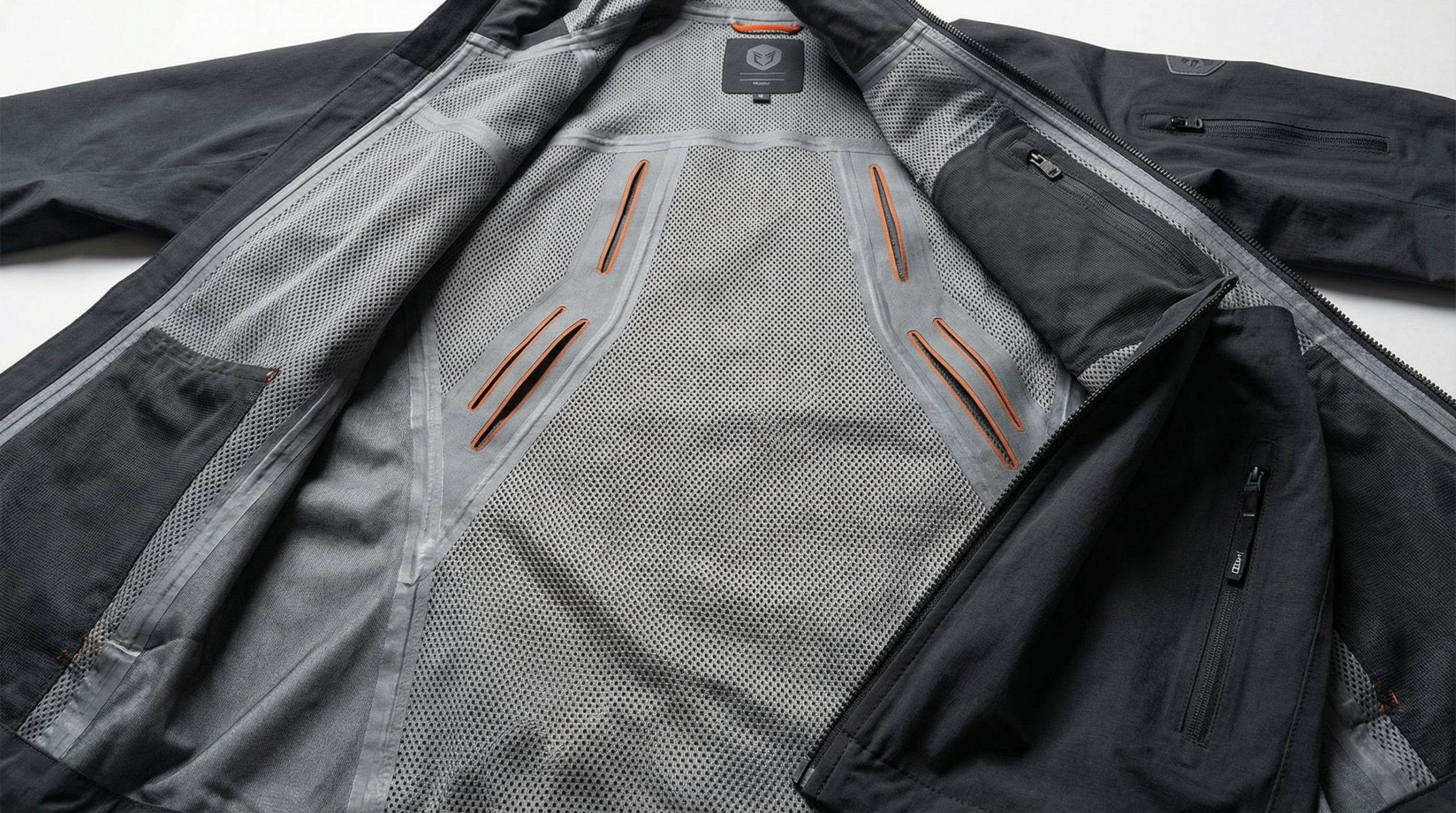 A high-quality lining mesh improves jacket ventilation by creating a physical gap between the outer shell and the wearer’s skin. This gap facilitates a chimney effect where hot air rises and escapes through the top and side vents of the garment.