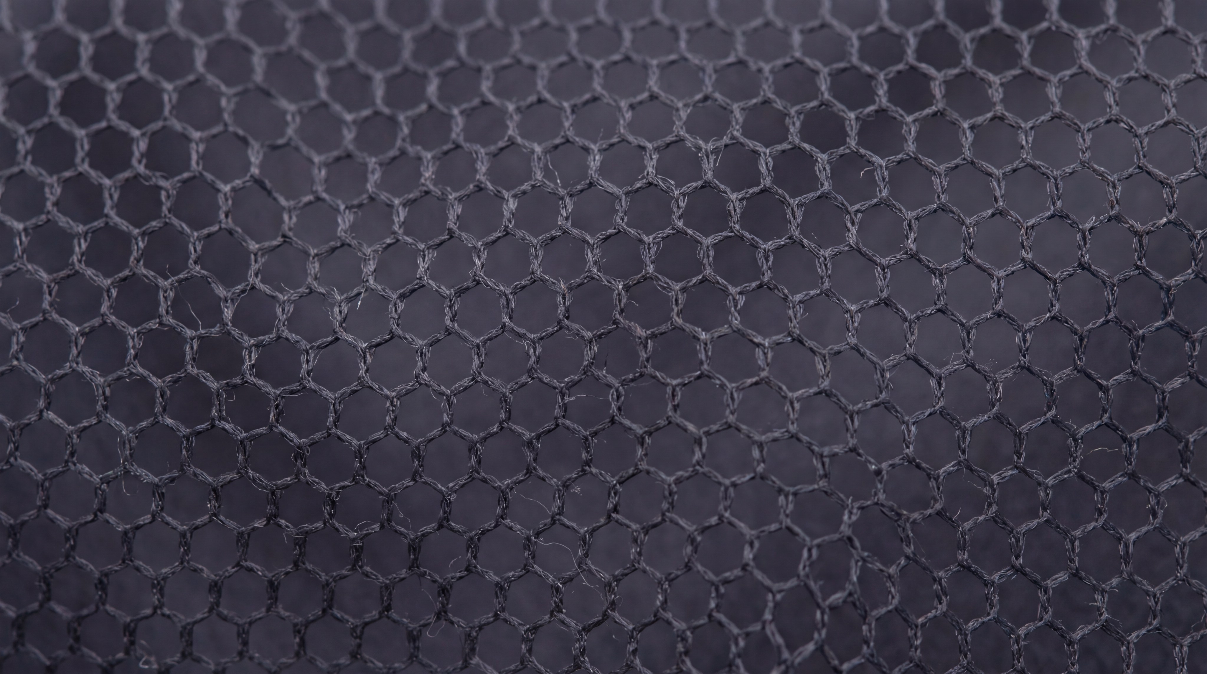 The hexagonal weave distributes tension across six sides rather than four, preventing the fabric from sagging in the center. This geometry allows the fabric to support its own weight over large surface areas without collapsing.