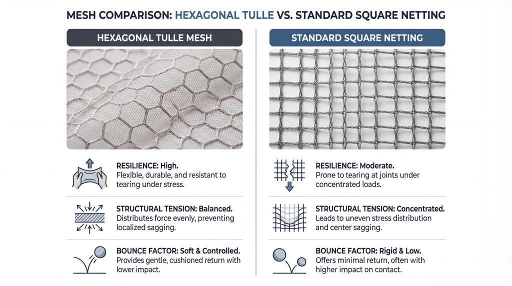 Key TakeawayThe hexagonal structure is the secret to “bounce,” making tulle the only viable choice for high-performance ballet tutus.