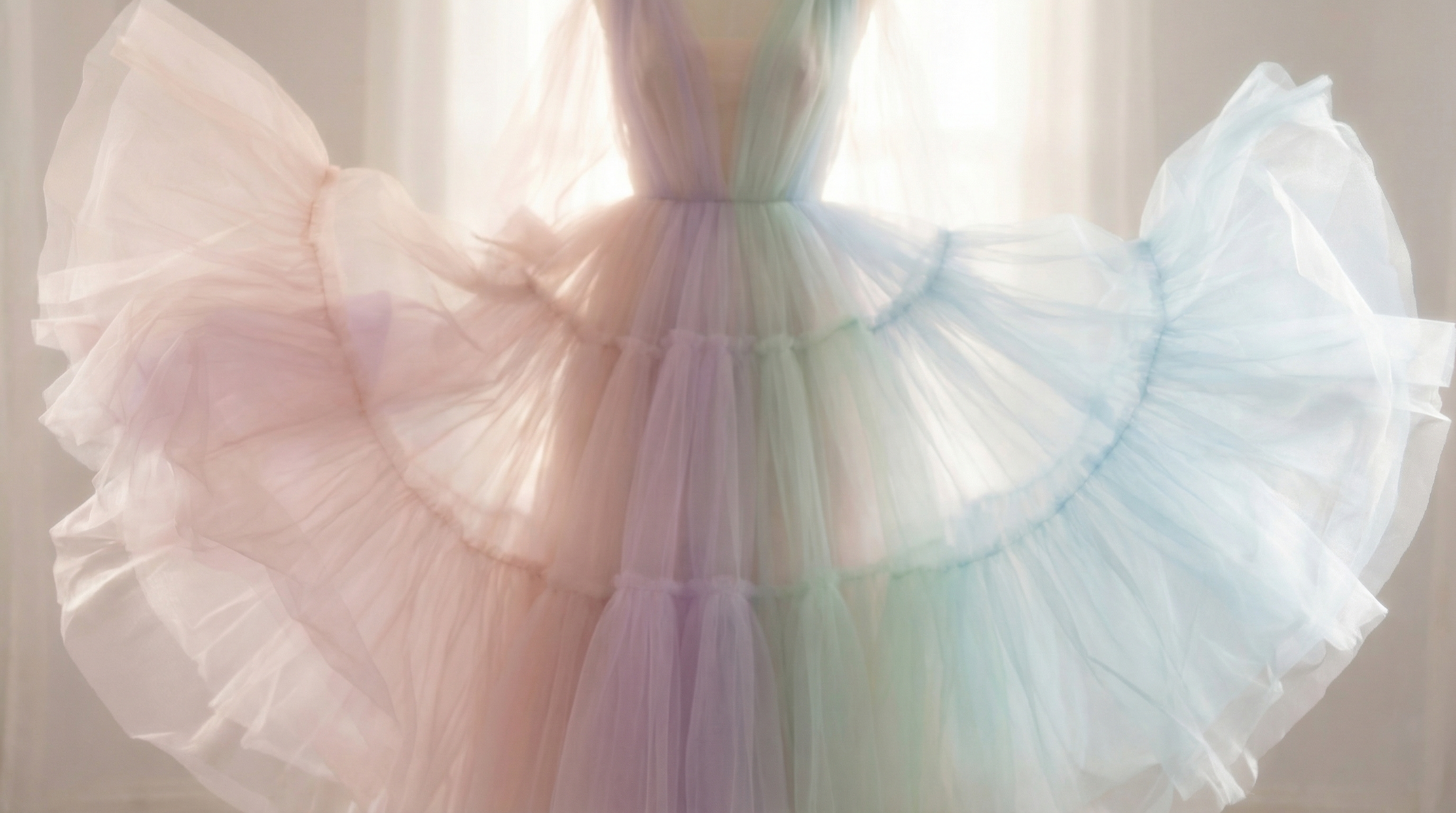 Key Takeaway: Soft tulle layering is the primary choice for creating volume in modern evening wear without compromising the fluidity of the garment.