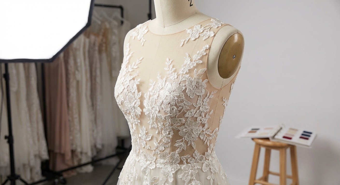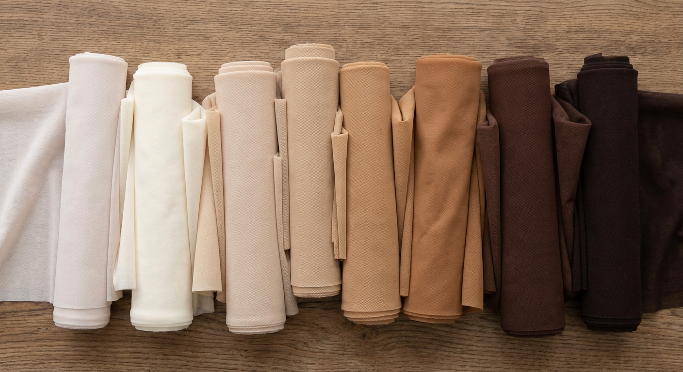 The success of an illusion design depends entirely on how well the 4-Way Stretch Mesh matches the wearer’s skin. You should view fabric swatches under various lighting conditions, including natural sunlight and fluorescent stage lights. A mesh that looks perfect in a showroom might look orange or grey under camera flashes. If you cannot find a perfect match, you can layer the mesh over Bridal Dress Tulle to shift the undertone.