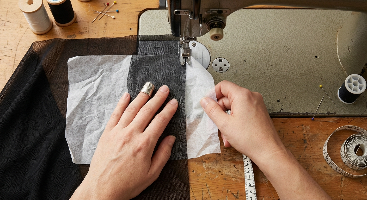 Key Takeaway: Temporary stabilizers provide the rigidity needed for clean, flat seams on slippery mesh surfaces.
