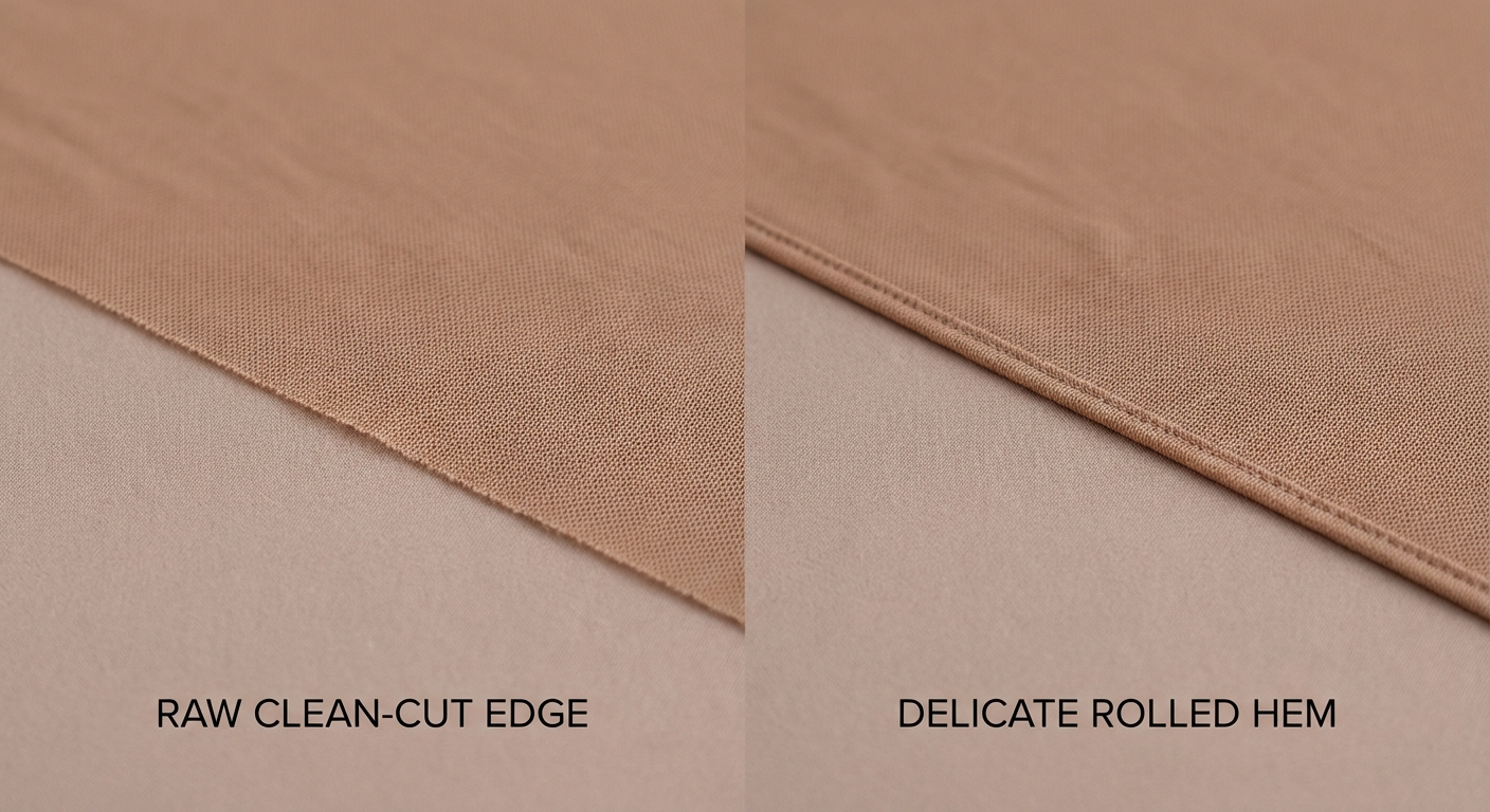 Key Takeaway: While raw edges are most common for illusion pieces, rolled hems offer a polished, professional finish for sportswear.