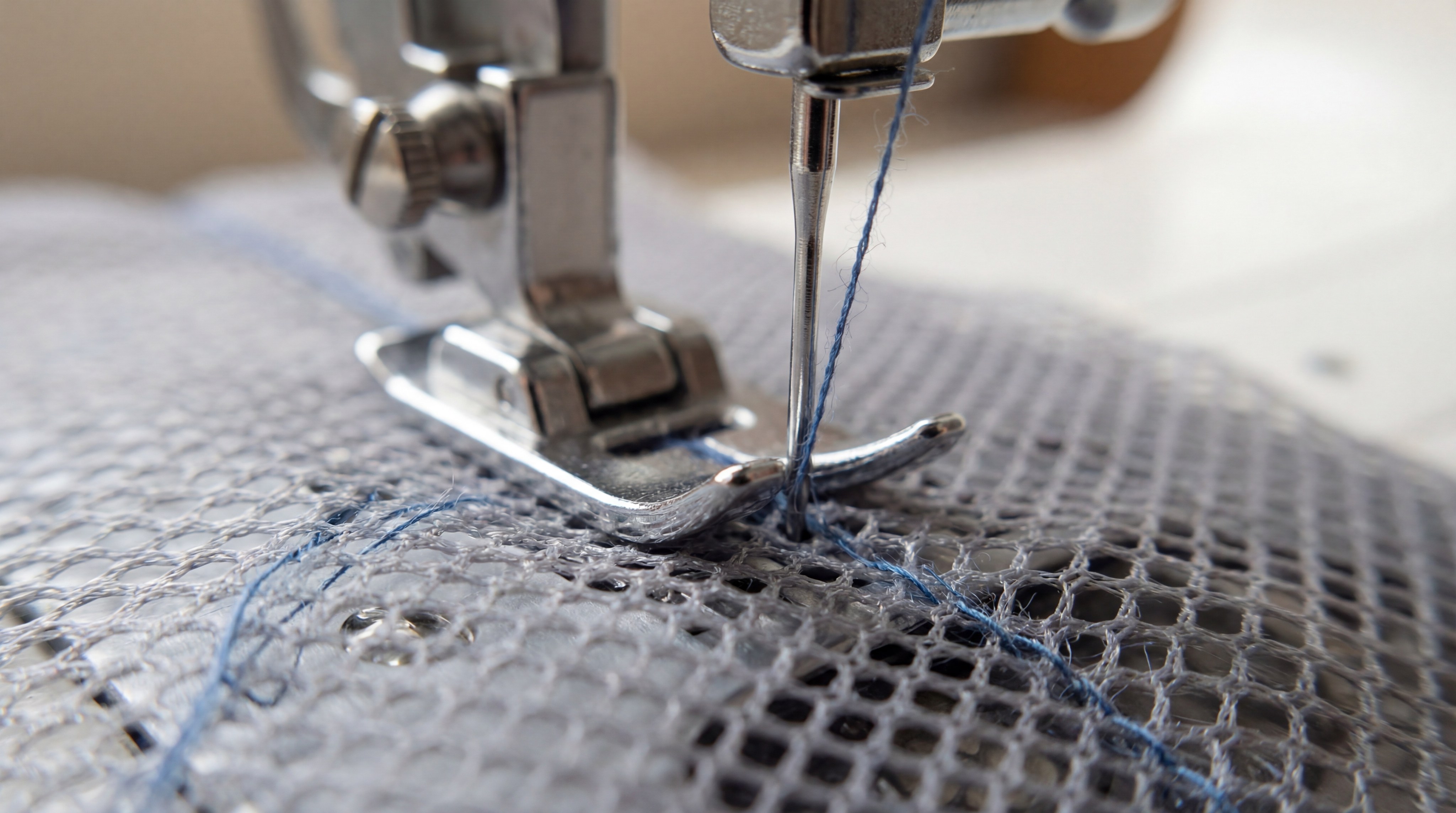 Key Takeaway: Using a ballpoint needle is non-negotiable, as sharp needles can cut the delicate mesh fibers and cause holes to run.