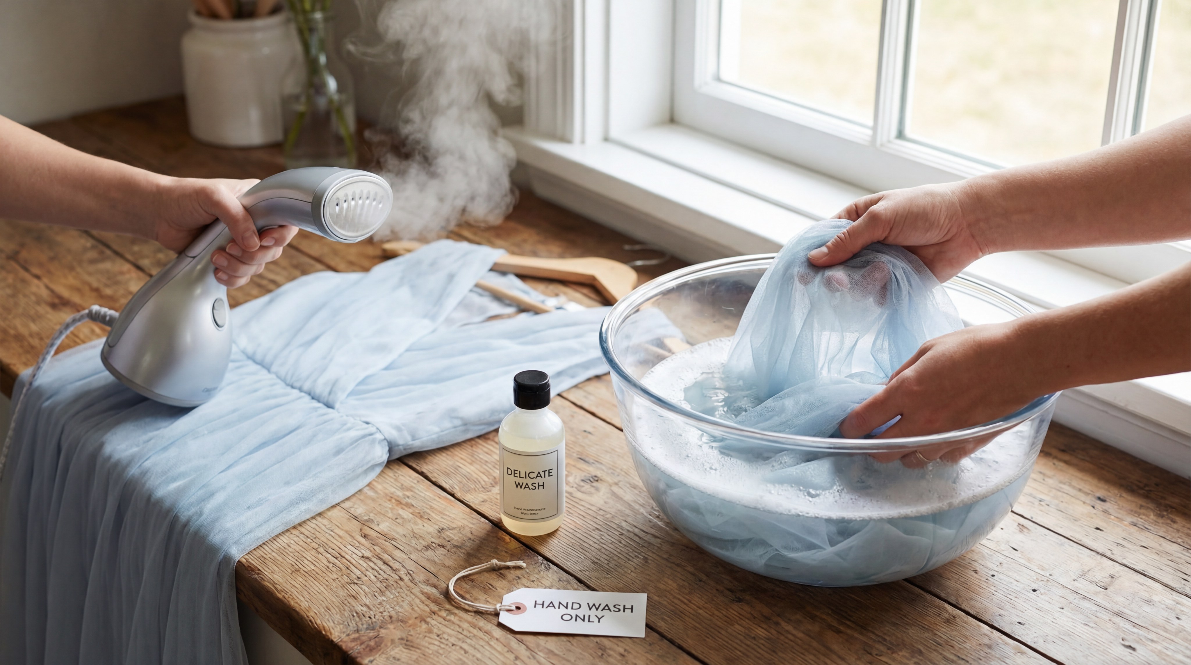 Key TakeawayPreserving the life of tulle requires a strict “steam and hand-wash” regimen to avoid the irreversible damage caused by heat and agitation.